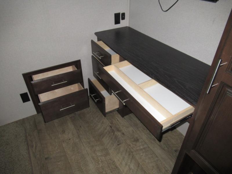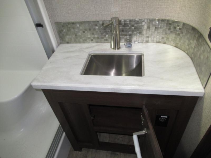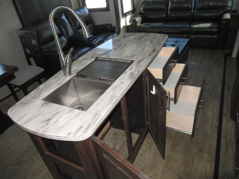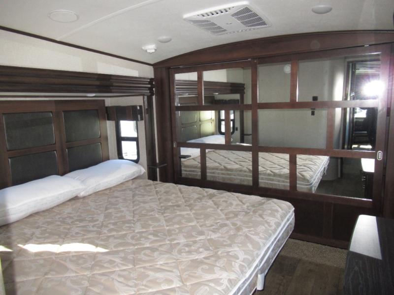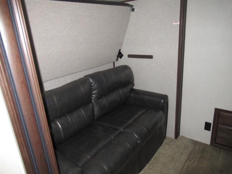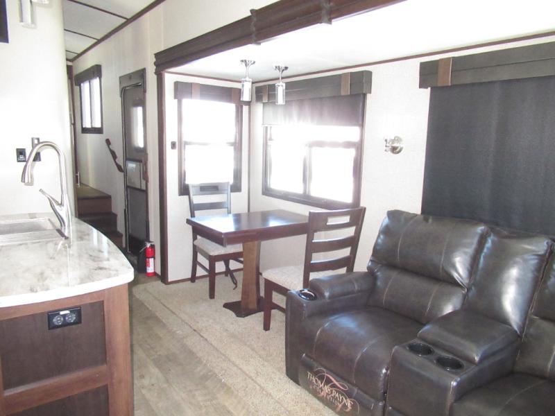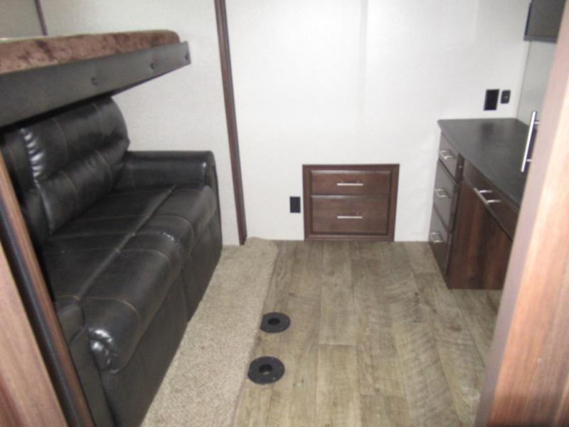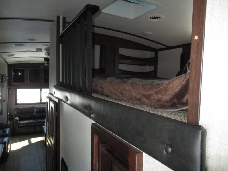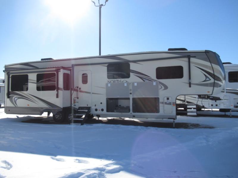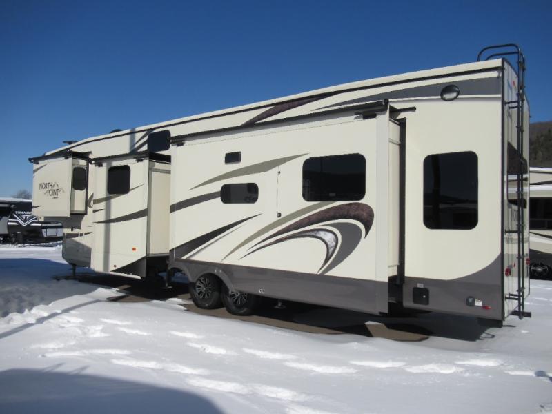 Get ready to make plenty of memories with your family when you choose to camp out in this four-slide North Point fifth wheel. In the kitchen you will find plenty of helpful tools to make dinner preparation an enjoyable process, like a large island with a double sink, as well as a 21 cubic foot residential refrigerator. Off of the kitchen you will find a private bunkhouse where your kids can run to for fun afternoon adventures or where you can go to get some work done at the desk. For those moments when you simply need some time to yourself, escape to the loft where you can take a quick nap or cozy up for the evening, and because of the 8' 11" arched ceilings, you won't feel cramped as you spend time in the loft.