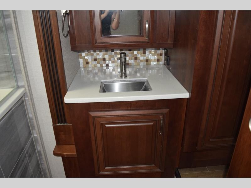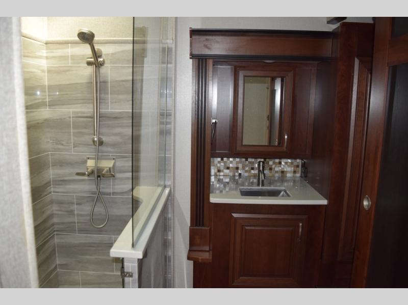 The Jayco Pinnacle is more than just another fifth wheel: it's the peak of luxury and the epitome of comfort no matter the destination! Each Pinnacle includes the Jayco-exclusive 5-Star Handling Package which comes with Dexter axles, a MORryde pin box for a smoother tow and maximum safety on the road, Dexter heavy-duty shackles, a MORryde rubberized suspension system allowing you to better absorb and isolate road shock, and Goodyear BEAST tires. You will also enjoy the interior of the Pinnacle for its opulent and luxurious details, like the stainless steel 21 cubic foot refrigerator with water/ice in the door and the powered reclining theater seats with heat and massage, and nowhere else will you feel more refreshed and relaxed than in the lavish bathroom with its oversized residential shower.