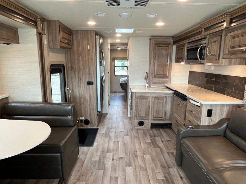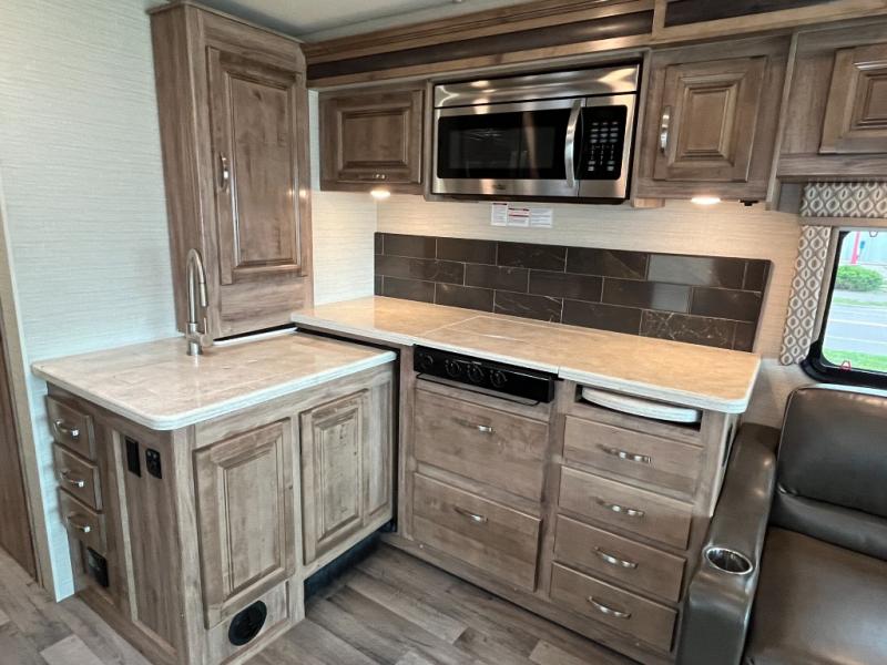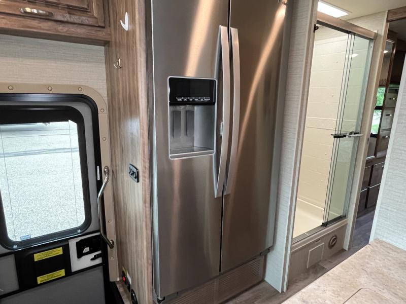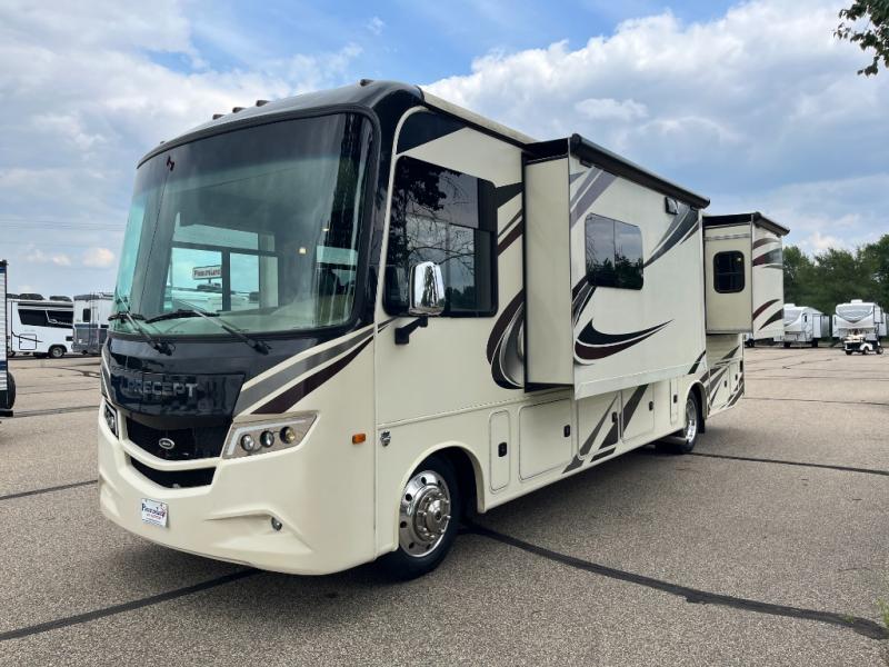 The Precept class A motorhome provides exclusive technology and premium ride and handling features for a luxurious home away from home experience on the open road. The JRide Plus feature allows for precise handling and stability for a safe ride anywhere you go. The automatic hydraulic leveling jacks, plus backup and sideview cameras allow for easy set up at your favorite destination. You will also appreciate the Onan Marquis Gold Genset 5,500-watt generator with auto-gen start, and the water filtration system to name a few other standard features. You sure can't go wrong with any Precept model by Jayco that you find to fit your family's size and lifestyle, it's time to choose now!