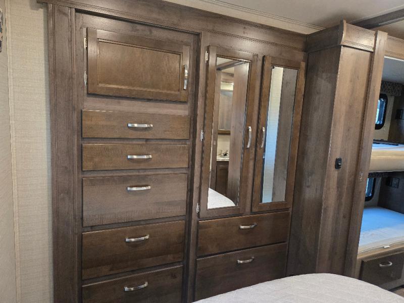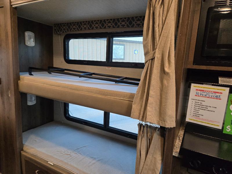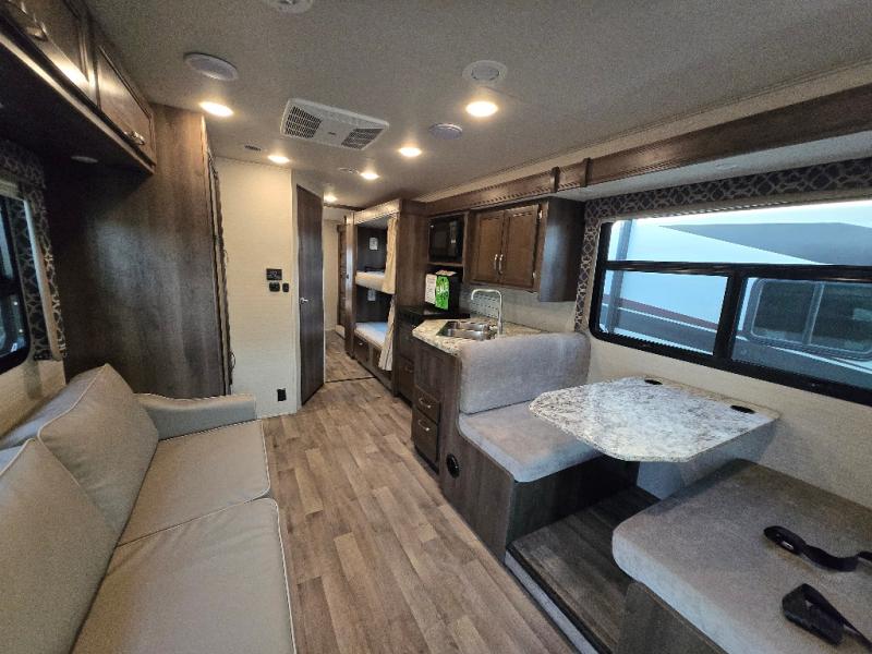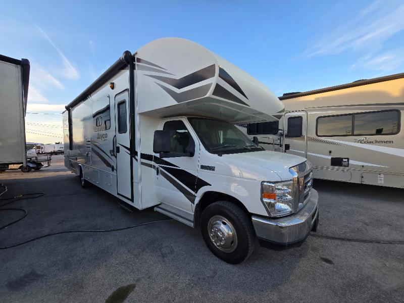 Don't miss out on a camping trip of a lifetime with this Jayco Redhawk 31F motorhome! Your kiddos are sure to love sleeping in the bunk beds, plus there is an additional bunk over the cab for an added guest. You are sure to love having your own rear private bedroom with a queen bed for you to enjoy a good night's rest, along with a wardrobe for you to hang your clothes. Plus there is even an entrance into the dual entry bath. Inside the dual entry bath, there is a 32" radius shower to give you added floor space and an overhead cabinet for you to keep your essentials handy and tidy. When you're ready to wind down the night, head to the pantry, grab your favorite snack, and relax on the sofa. You can also enjoy yourself by watching your favorite movie on the 32" LED HDTV!