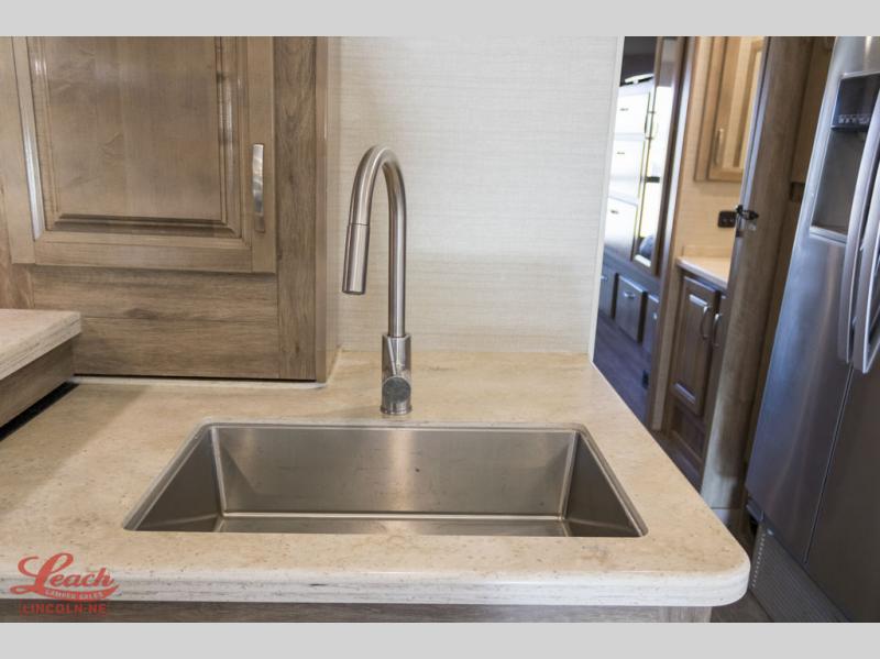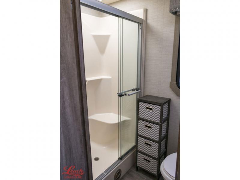 For any camping trip you take, you will want this Jayco Seneca Class C diesel motorhome to be the vessel that gets you there. The three slides open up the interior and give it plenty of room for full-size amenities, like the convection microwave and 21 cubic foot residential refrigerator in the kitchen. Not only does this model have enough room for all of your favorite amenities, but it also has enough room for all of your favorite people because of its ability to sleep nine people at bed time. You and your family will love gathering together each night in the living area as you play a card game together on the booth dinette or rest on one of the sofas.