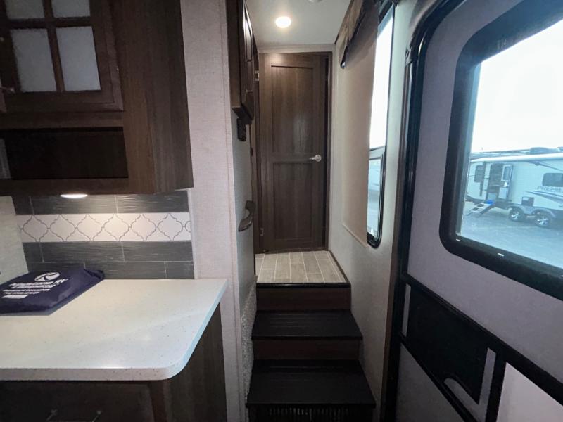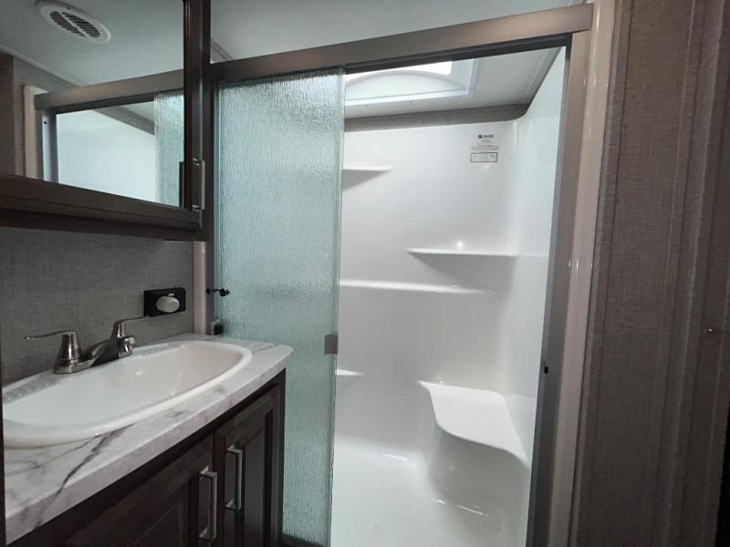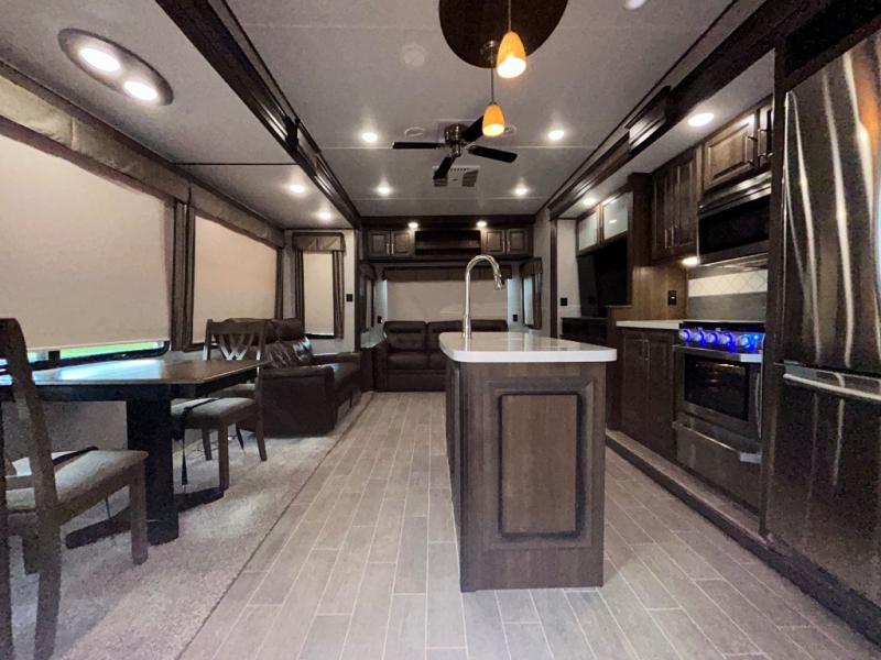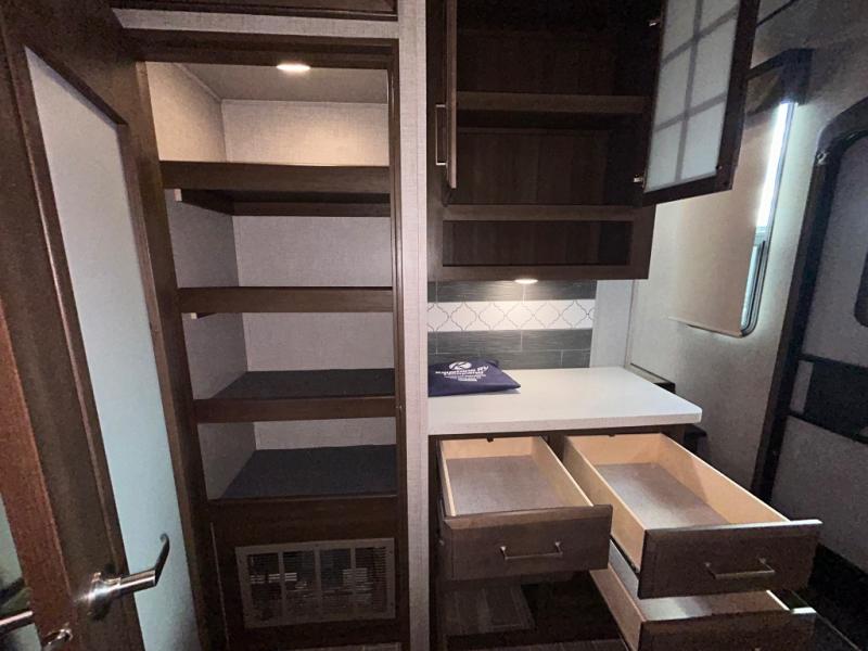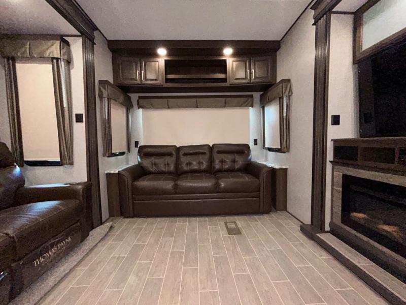 With any Keystone Avalanche fifth wheel, you will enjoy getting to your favorite destination with the exceptional turning radius from the MAX TURN high-gloss fiberglass front and rear cap including the aerodynamic design for less drag, as well as the Road Armor suspension. Once you have arrived at your destination, the One Place Command Center with its centrally located operational switches and gauges will allow you to set up your RV quickly, and the one-touch electric awning with adjustable arms will provide protection from the sun and weather while you load your clothing, dishes, and gear into all of the interior storage compartments.