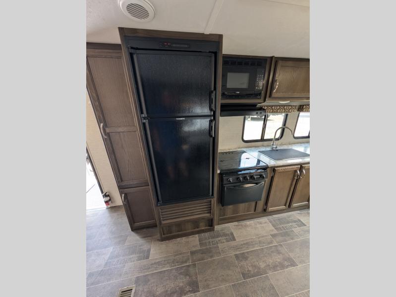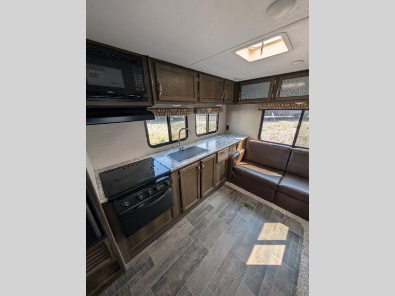 Are you ready to head out for your next camping trip? Well, load up your family and set out in this Bullet travel trailer for an unforgettable trip together. Meal prep has never been easier than with the two kitchens that have been included in this unit, one indoor and one outdoor, and the full bathroom makes it easy to rinse off after a messy day of adventures. No matter what time of day it is, you will thoroughly enjoy the private master suite for its relaxation and seclusion from the rest of the trailer. At the end of the night, you can gather together for a round of cards and late-night snack on the U-shaped dinette before you head to bed.