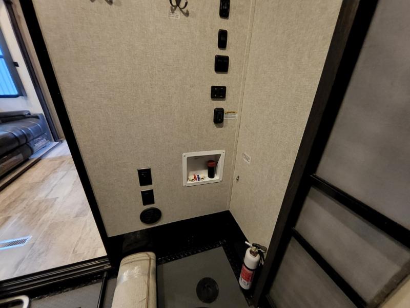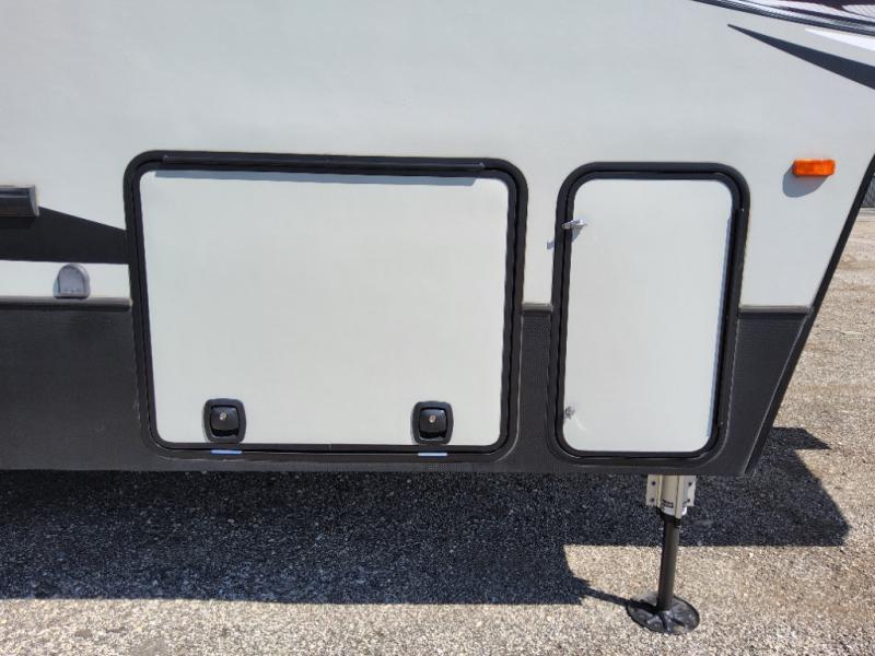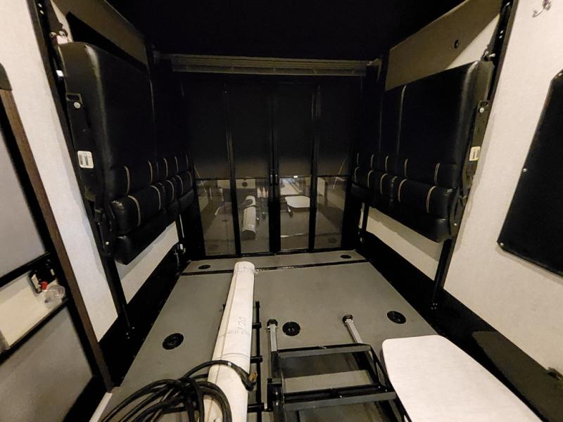 These Keystone Carbon toy hauler fifth wheels are the perfect units for you and your toys! There are plenty of indoor luxuries that you'll enjoy, including solid surface counter tops, Maple hardwood cabinetry, and stainless steel appliances. The safety package comes standard with each unit. This package includes a carbon monoxide detector, an LP gas detector, a smoke detector, and a fire extinguisher. You can be sure your family will be safe while you travel! Outside you'll enjoy features such as a one touch electric awning with LED lights, an outside shower to rinse off the sand from the lake, and a huge pass through storage for your large camping items. These fifth wheels have been prepped for you to have a backup camera if you choose, making your life easier while you are trying to park.