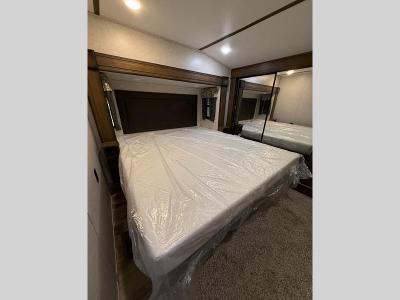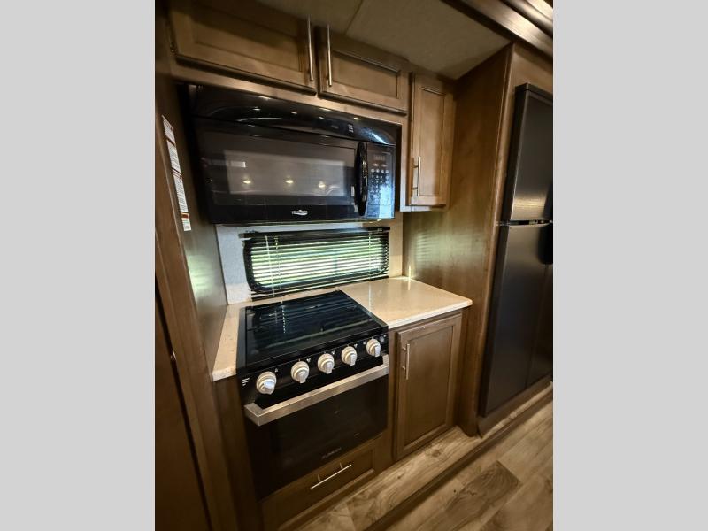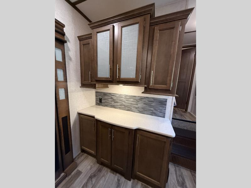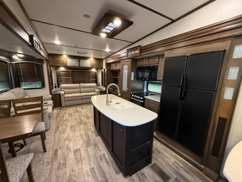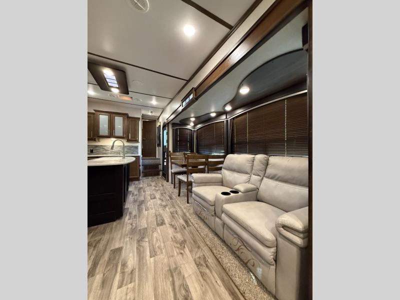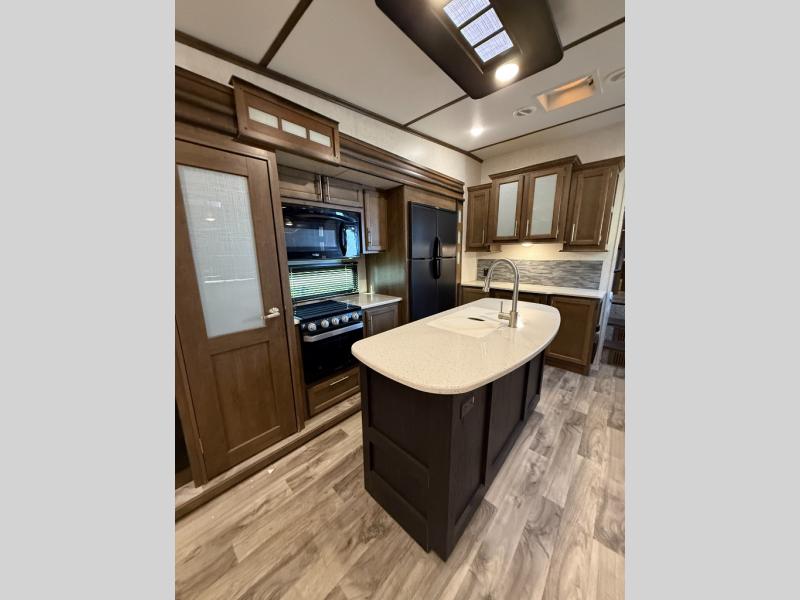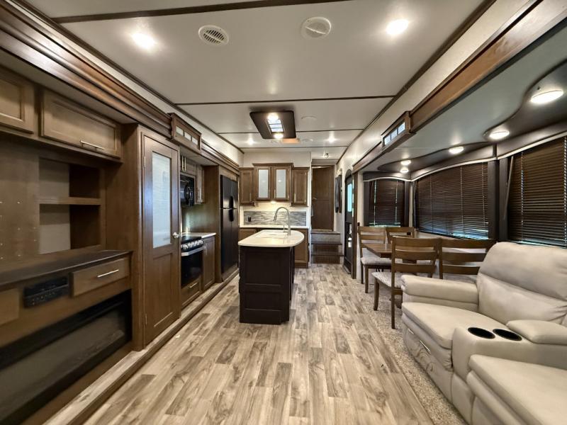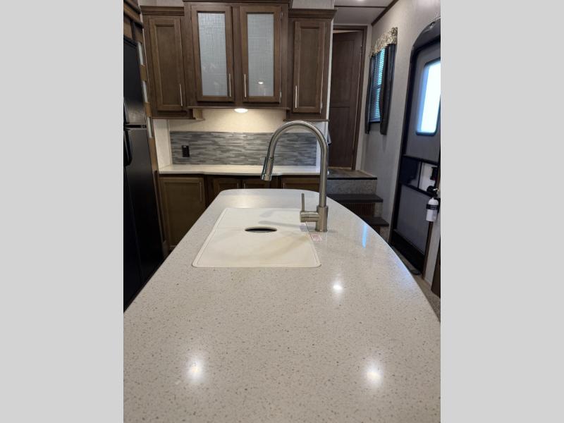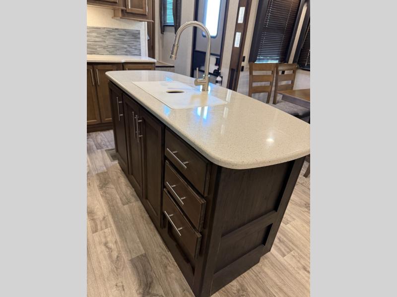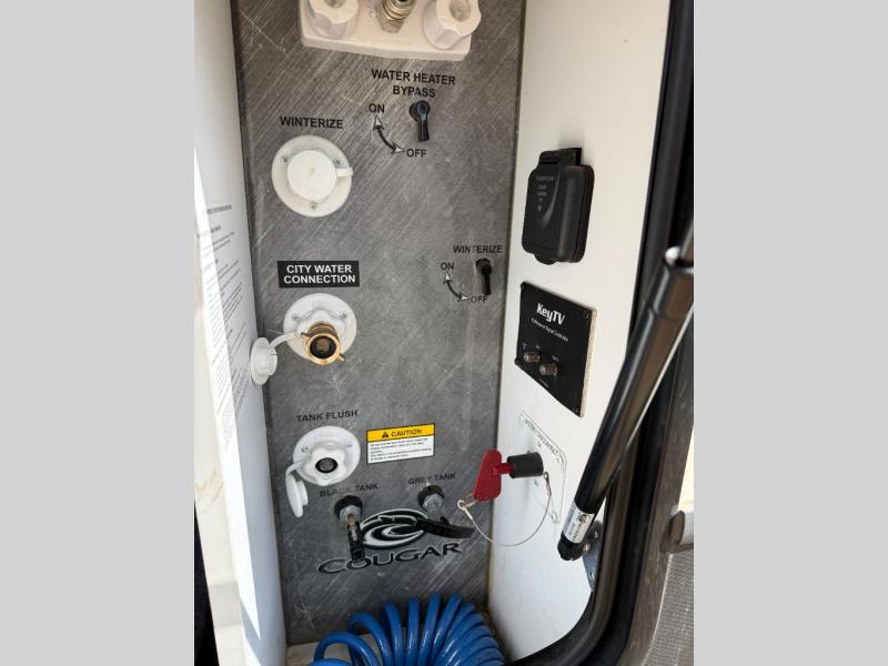 With any Keystone Cougar you will enjoy the Max Turn technology in the front cap when driving around town and parking the fifth wheel. You will be able to camp in any weather with the forced-air heated and enclosed underbelly with enclosed dump valves and Astrofoil insulated slide floors. If you need to stay cool or warm, these units have you covered. Inside, you are sure to love the LG solid surface countertop upgrade in the galley, the two TVs, the Cougar vintage maple glazed hardwood, and much more! You will also love the IN-Command Smart automation with global connect offering full remote thermostat control including scheduling with the mobile app, control of slide rooms, awnings, and light groups also available on the touchscreen display commander, plus there is a panic/intruder alert. Come get your favorite Cougar model and start making memories.
