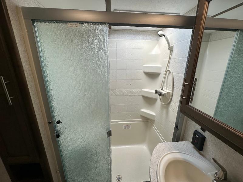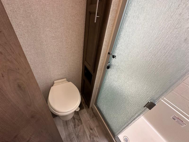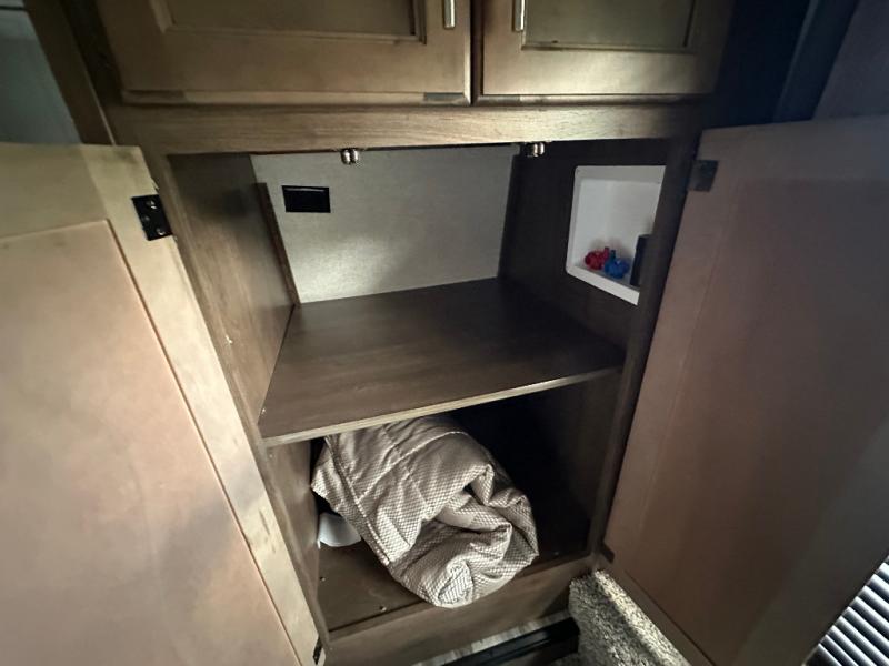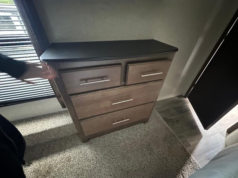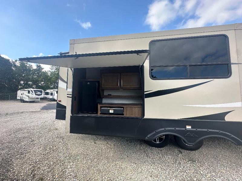 Looking for a couples trailer with extra sleeping space for the grandkids? When you travel do you enjoy grilling when you get a chance? This Cougar fifth wheel might just fit your needs and wants. From a push of the button to open up triple slides for more interior floor space to a pivot hinge bathroom door as an added convenience, you will find lots to love about this RV. After having fun outdoors, you can return to a full bathroom to get cleaned up, and comfortable furniture to watch TV with a fireplace below. The master bedroom will not disappoint. You will find plenty of storage throughout the interior including inside the large pantry, inside the linen cabinet in the bathroom, and the front bedroom's full height wardrobe or dresser. Outside, the unobstructed pass-through storage allows you to bring along golf clubs, outdoor camping chairs or tables, and such. Take a look today!