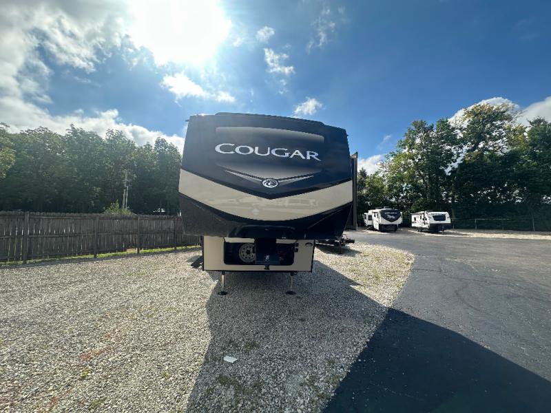 With any Keystone Cougar you will enjoy the Max Turn technology in the front cap when driving around town and parking the fifth wheel. You will be able to camp in any weather with the forced-air heated and enclosed underbelly with enclosed dump valves and Astrofoil insulated slide floors. If you need to stay cool or warm, these units have you covered. Inside, you are sure to love the LG solid surface countertop upgrade in the galley, the two TVs, the Cougar vintage maple glazed hardwood, and much more! You will also love the IN-Command Smart automation with global connect offering full remote thermostat control including scheduling with the mobile app, control of slide rooms, awnings, and light groups also available on the touchscreen display commander, plus there is a panic/intruder alert. Come get your favorite Cougar model and start making memories.