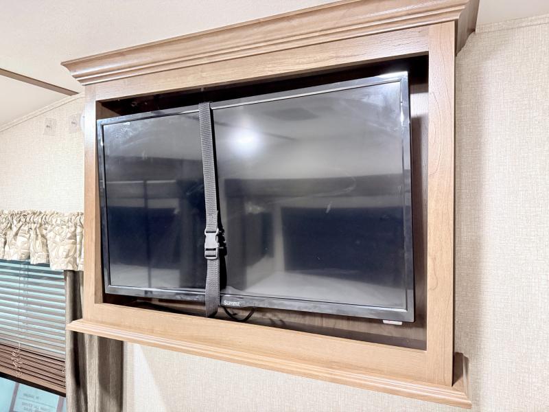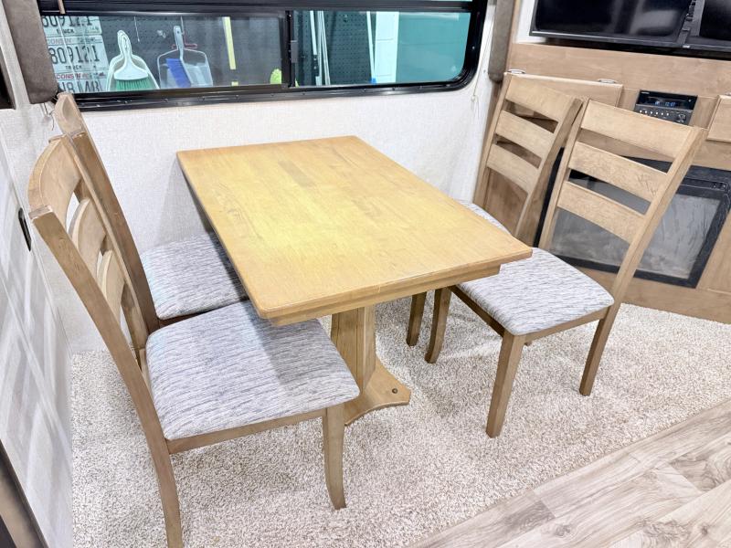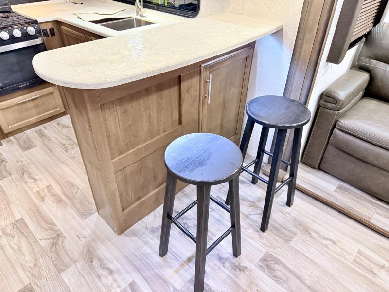 Been searching for a full-time fifth wheel with a rear kitchen layout including a breakfast bar and plenty of space to prepare meals for overnight guests? This Cougar has you covered! You can even watch the 50" LED HDTV with a fireplace below while making meals. The living area offers plenty of seating to relax inside, plus you can dine at the free standing dinette. The master bedroom's queen bed allows you to rest comfortably unless you both decided to get the optional king size bed for more sleeping area. Be sure to add the washer and dryer option to the prepped space in the closet, these appliances make full-time RVing so much easier. This is the one!