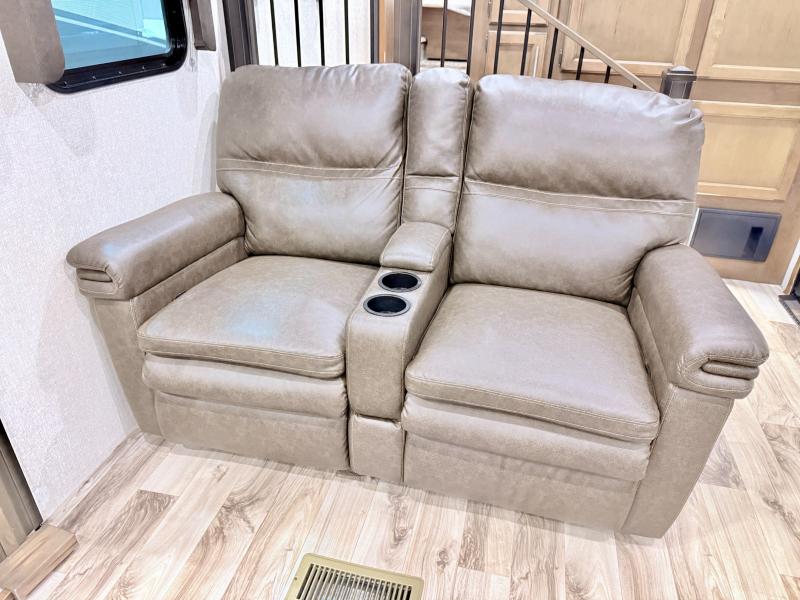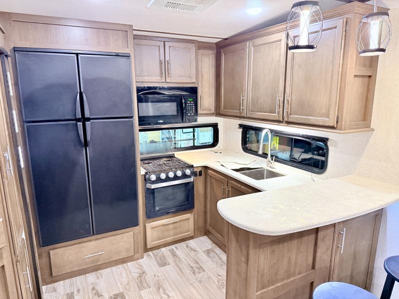 With any Keystone Cougar you will enjoy the Max Turn technology in the front cap when driving around town and parking the fifth wheel. You will be able to camp in any weather with the forced-air heated and enclosed underbelly with enclosed dump valves and Astrofoil insulated slide floors. If you need to stay cool or warm, these units have you covered. Inside, you are sure to love the LG solid surface countertop upgrade in the galley, the two TVs, the Cougar vintage maple glazed hardwood, and much more! You will also love the IN-Command Smart automation with global connect offering full remote thermostat control including scheduling with the mobile app, control of slide rooms, awnings, and light groups also available on the touchscreen display commander, plus there is a panic/intruder alert. Come get your favorite Cougar model and start making memories.