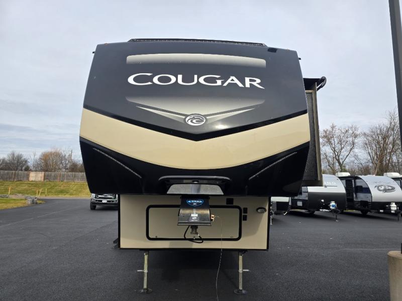 With any Keystone Cougar you will enjoy the Max Turn technology in the front cap when driving around town and parking the fifth wheel. You will be able to camp in any weather with the forced-air heated and enclosed underbelly with enclosed dump valves and Astrofoil insulated slide floors. If you need to stay cool or warm, these units have you covered. Inside, you are sure to love the LG solid surface countertop upgrade in the galley, the two TVs, the Cougar vintage maple glazed hardwood, and much more! You will also love the IN-Command Smart automation with global connect offering full remote thermostat control including scheduling with the mobile app, control of slide rooms, awnings, and light groups also available on the touchscreen display commander, plus there is a panic/intruder alert. Come get your favorite Cougar model and start making memories.