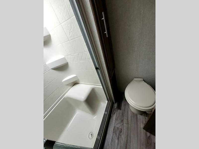 Looking for a fifth wheel that provides a large main living and kitchen area to entertain other RVers? Just imagine hosting the campground party inside due to the weather conditions with a free standing dinette to play games, two recliners to sit in and visit, and a sleeper sofa for overnight guests. The peninsula kitchen counter allows you to serve appetizers and wash dishes. The guests can walk up the steps to the bathroom and set their jackets on your queen bed in the master bedroom. The pivot hinge door into the bathroom gives everyone more space. Don't forget about the Hitch Vision backup mirror allowing you to safely hitch up before heading back home.