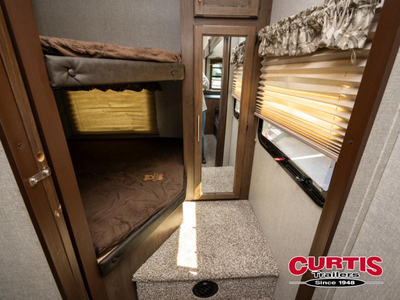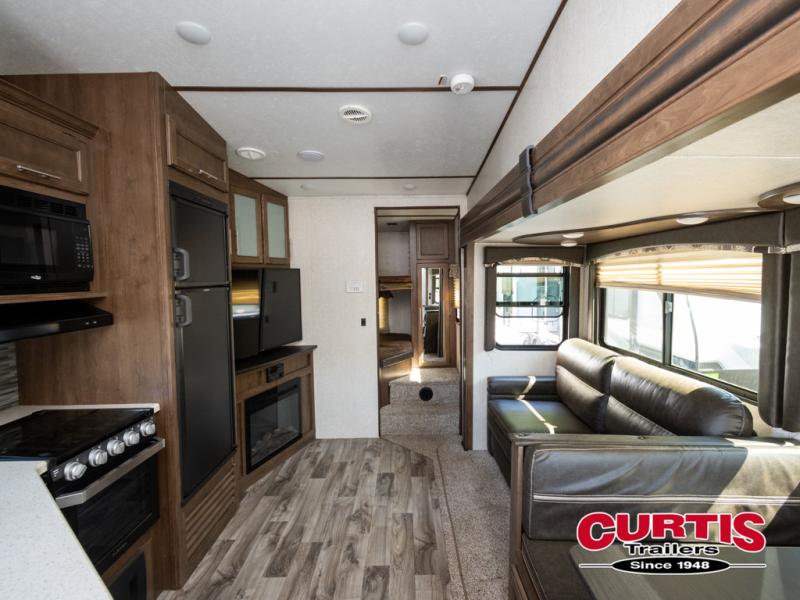 If your wish list includes a bunkhouse in your next fifth wheel then stop and take a look at this Cougar Half-Ton. The front master bedroom and rear bunkhouse provide separation from you and the kids when everyone is wanting their own space. If you have two kiddos or four sleepy campers, the double size bunk beds allow you that sleeping space. You will appreciate more interior walking around room in the living/kitchen area and the front bedroom just like you imagined with two slides. You have the choice of cooking inside, or outside on the capital grill, and storing your drinks in the mini refrigerator. The Hitch Vision backup mirror provides a safe and easy way to hitch up and park at home or at your favorite campsite, who wouldn't desire that! Load up and head out!