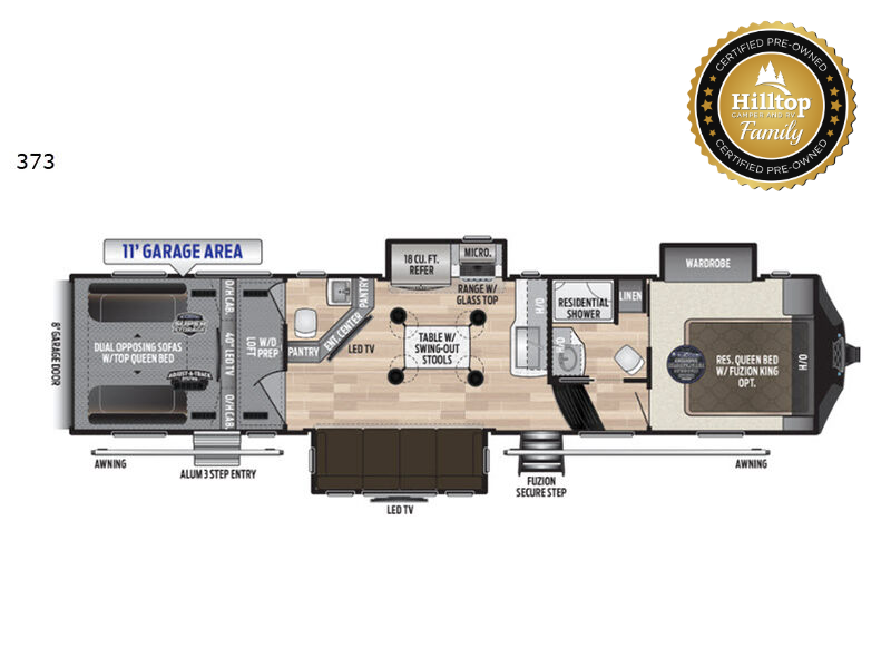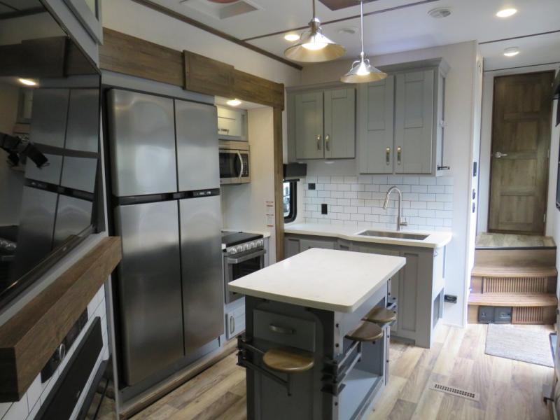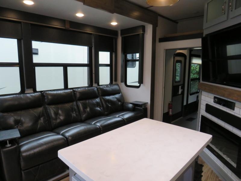 The Fuzion toy hauler fifth wheels are more than just a garage: they are a luxurious getaway experience! The Fuzion gives you a place to store your toys while you are traveling, yet delivers the comforts of home at the same time. What sets the Fuzion apart from the rest of the crowd are the exclusive swing-out stools that make it easy to indulge in a quick snack at the counter and the hidden pantry that keeps the interior looking clutter free. The iN-Command control system is also something you don’t want to miss out on. This system controls all the lights, tanks, thermostat, and awnings all within an app on your phone. And for those who pack everything but the kitchen sink, you will certainly appreciate the Fuzion-exclusive Super Storage compartment in the garage that will allow you to bring along everything you need for a successful adventure with the family!
