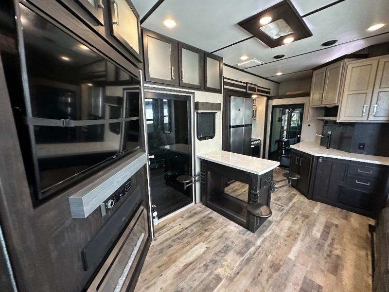 The Fuzion toy hauler fifth wheels are more than just a garage: they are a luxurious getaway experience! The Fuzion gives you a place to store your toys while you are traveling, yet delivers the comforts of home at the same time. What sets the Fuzion apart from the rest of the crowd are the exclusive swing-out stools that make it easy to indulge in a quick snack at the counter and the hidden pantry that keeps the interior looking clutter free. The iN-Command control system is also something you don’t want to miss out on. This system controls all the lights, tanks, thermostat, and awnings all within an app on your phone. And for those who pack everything but the kitchen sink, you will certainly appreciate the Fuzion-exclusive Super Storage compartment in the garage that will allow you to bring along everything you need for a successful adventure with the family!