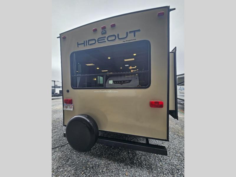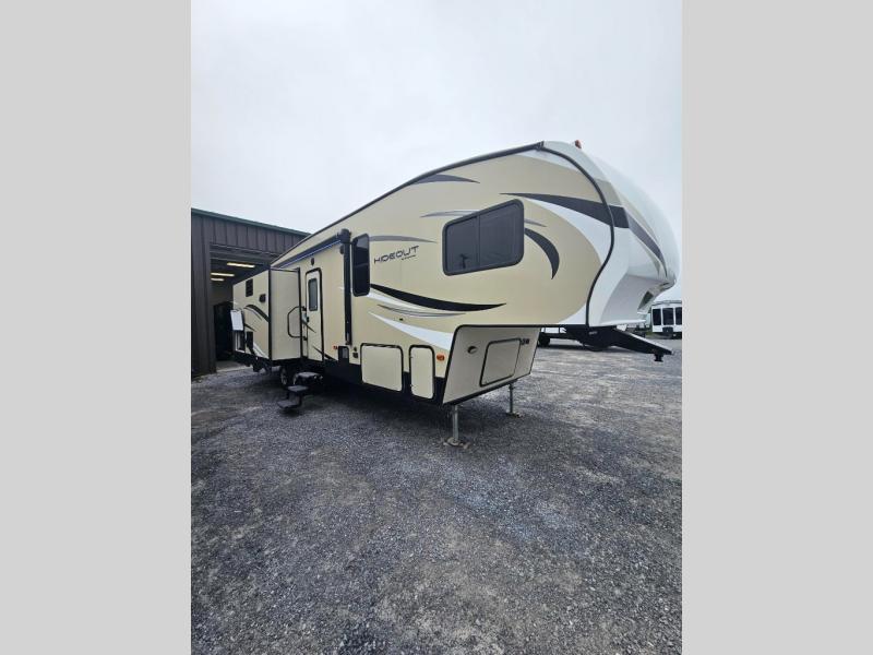 You are going to love the spaciousness of this Keystone Hideout fifth wheel! With two opposing slides in the rear living area, you will easily see the conveniences when you step inside. After you set up camp, take a break and relax in the theater seats as you take in the wonderful aromas coming from the three-burner range top in the kitchen, and once dinner is over, you will look forward to retreating to your own private bedroom where you can sleep peacefully and wake up refreshed for the adventures ahead.