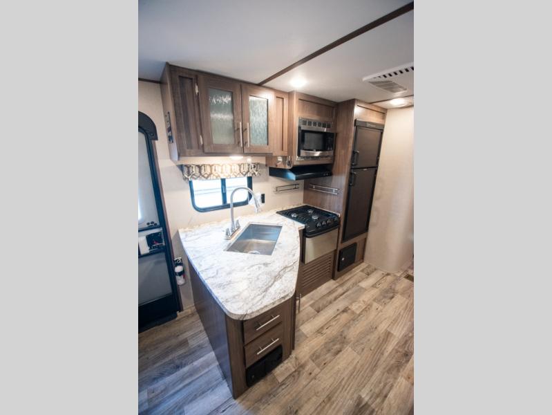 For any trip, whether near or far, you will want a Hideout fifth wheel, travel trailer, or destination trailer by Keystone RV. These models are lightweight which makes them easy to hook up and tow. Just load up your belongings and head out for a weekend away in your own Hideout retreat. A few key features inside of each model include: pleated shades in the living area, a high-rise faucet in the kitchen, and full-strutted storage under the master bed, and the exterior is just as indulgent with its powder-coated I-beam frame, exterior speakers, black radius window frames, hurricane straps reinforced structure, and exterior shower. Don't wait any longer to enjoy your own private hideout with the Keystone Hideout!