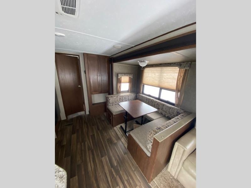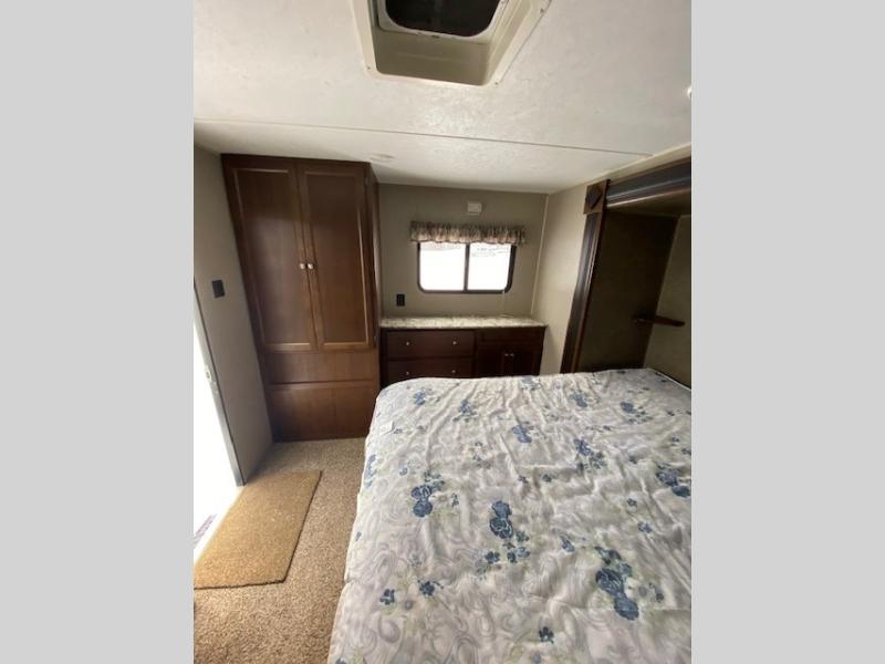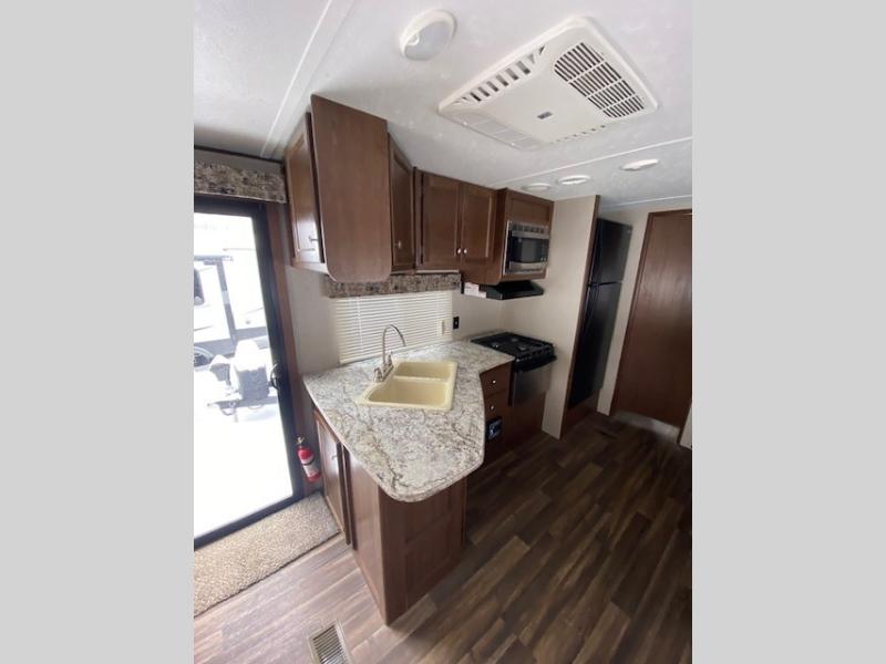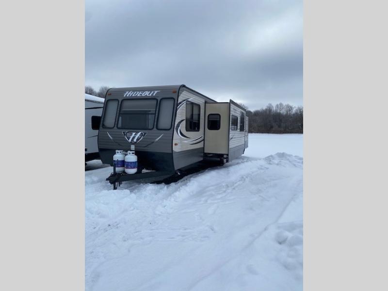 For any trip, whether near or far, you will want a Hideout fifth wheel or travel trailer by Keystone RV. These models are lightweight which makes them easy to hook up and tow. Just load up your belongings and head out for a weekend away in your own Hideout retreat. A few key features inside of each model include: pleated shades in the living area, a high-rise faucet in the kitchen, and full-strutted storage under the master bed, and the exterior is just as indulgent with its powder-coated I-beam frame, exterior speakers, black radius window frames, hurricane straps reinforced structure, and exterior shower. Don't wait any longer to enjoy your own private hideout with the Keystone Hideout!