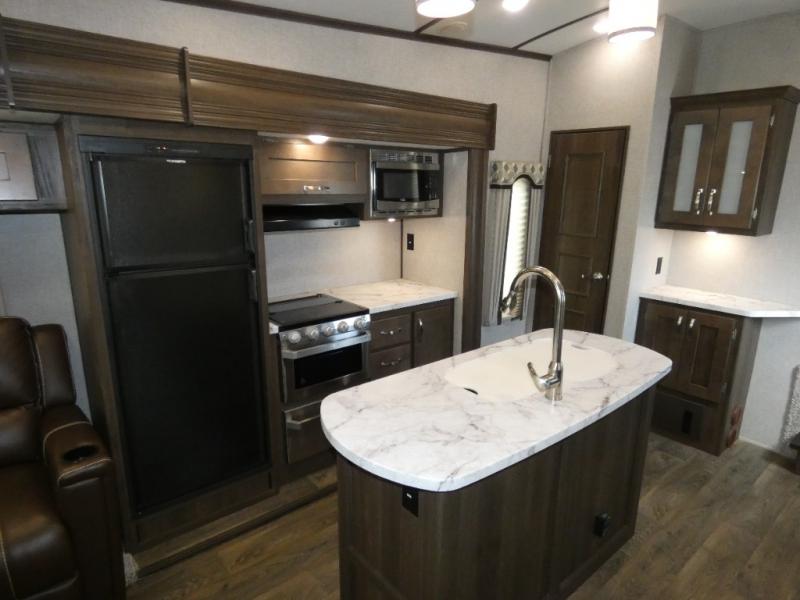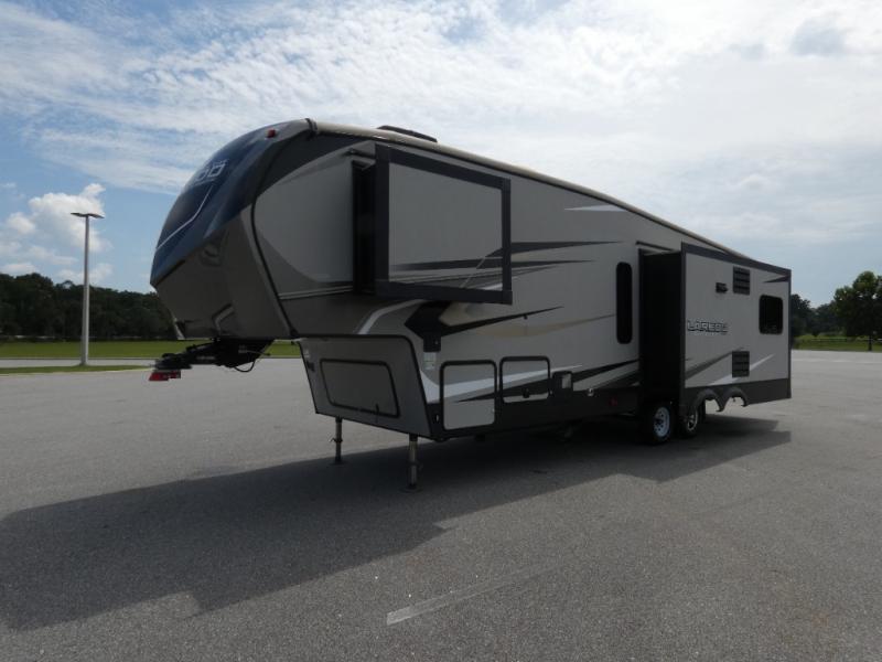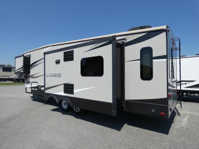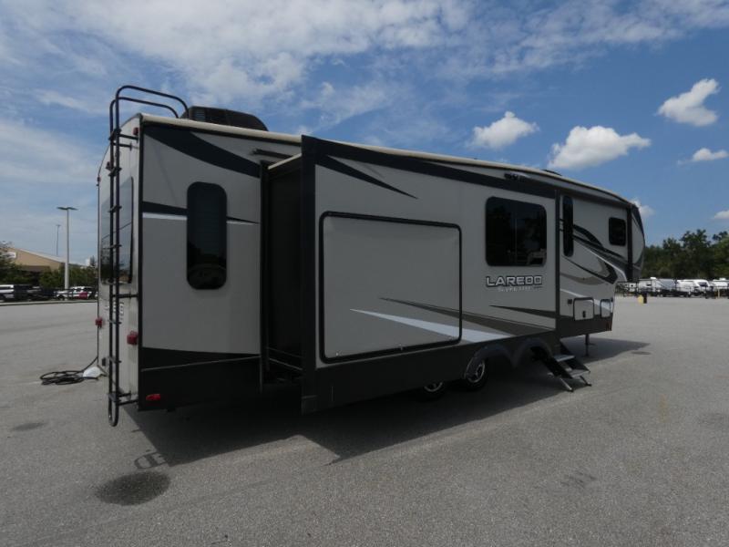 Keystone Laredo Super Lite fifth wheels are the units you should be looking at when considering your next RV. From the Road Armor suspension system, the automatic electric leveling system, the fully enclosed underbelly, and the lighted and heated pass-through storage, to the 50" residential shower, solid surface countertops and raised panel cabinet doors, you will enjoy everything about these fifth wheels. Keystone's exclusive KeyTV providing a multi-source signal control that improves signal quality and television operation, and the industry's first 4G Lite and WiFi prep, will keep you connected. Choose your favorite layout today!