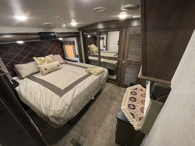 When packing for your next trip in a Keystone Montana luxury fifth wheel you will appreciate the enormous drop frame pass-through storage compartment, the MORyde "Step Above" entry steps with strut assist, and the LED light package including "super-bright" taillights with backup marker and off-door scare light. The Montana 20th Anniversary Edition adds exclusive features such as the Key TV satellite prep, LED accent lighting, Tru-fit slide construction, and Easy Sweep resilient flooring. You will love the in-floor heating ducts, which allow for more airflow to be distributed evenly for optimal comfort. the LED motion sensor light in the pass-through compartment and convenience center, plus the Four Season Living package allowing you to travel whenever you like. It's time to find the luxury fifth wheel you can enjoy for years to come, choose a Montana by Keystone today!