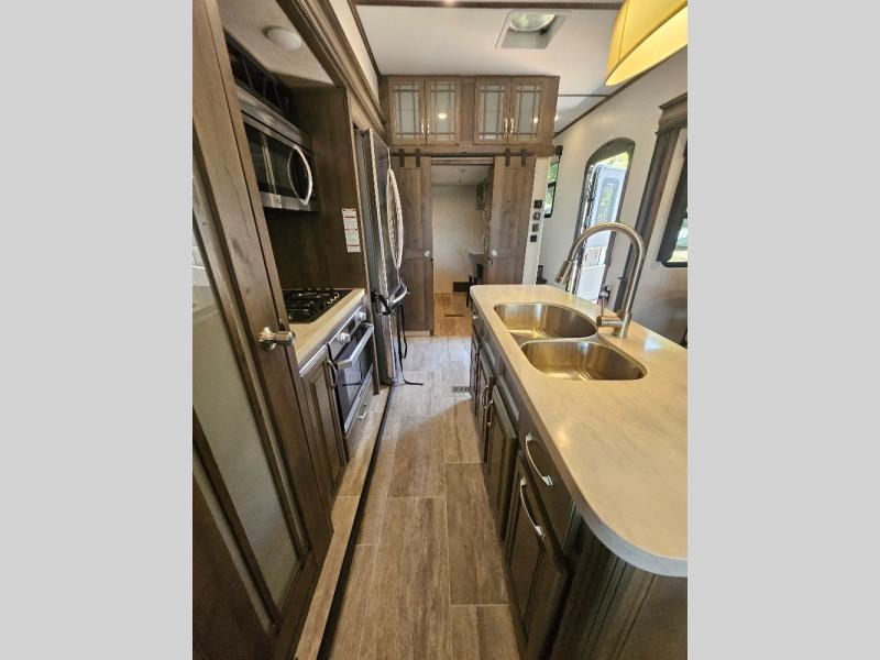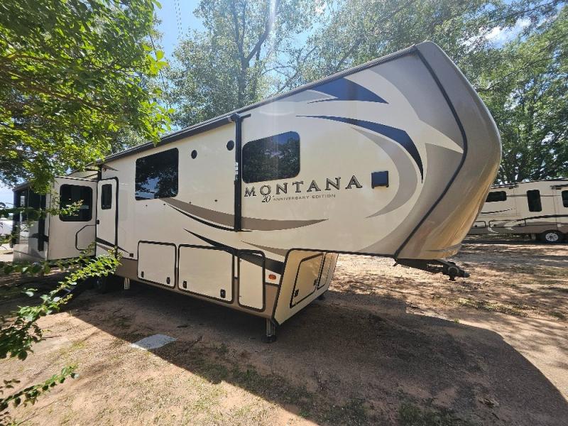 When packing for your next trip in a Keystone Montana luxury fifth wheel you will appreciate the enormous drop frame pass-through storage compartment, the MORyde "Step Above" entry steps with strut assist, and the LED light package including "super-bright" taillights with backup marker and off-door scare light. The Montana 20th Anniversary Edition adds exclusive features such as the Key TV satellite prep, LED accent lighting, Tru-fit slide construction, and Easy Sweep resilient flooring. You will love the in-floor heating ducts, which allow for more airflow to be distributed evenly for optimal comfort. the LED motion sensor light in the pass-through compartment and convenience center, plus the Four Season Living package allowing you to travel whenever you like. It's time to find the luxury fifth wheel you can enjoy for years to come, choose a Montana by Keystone today!