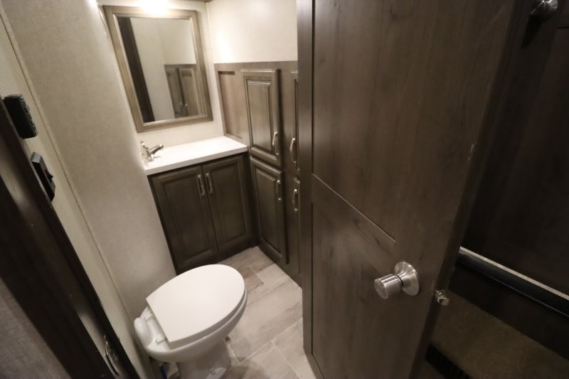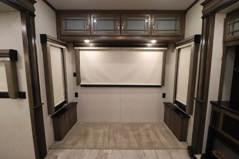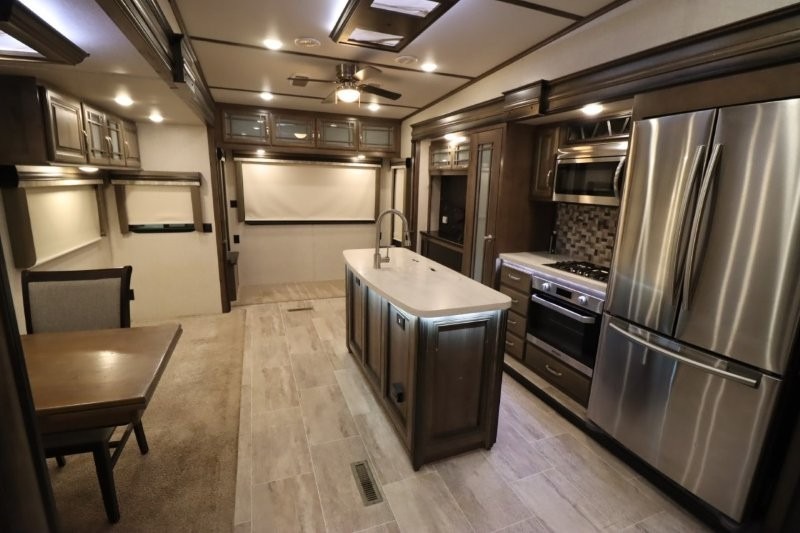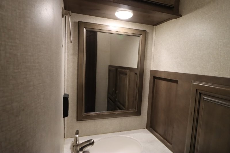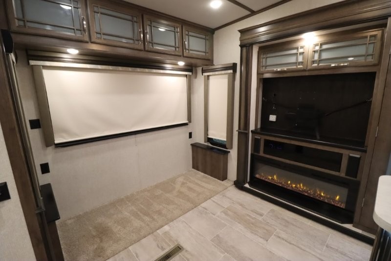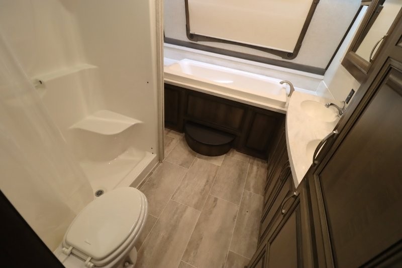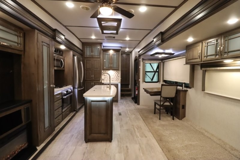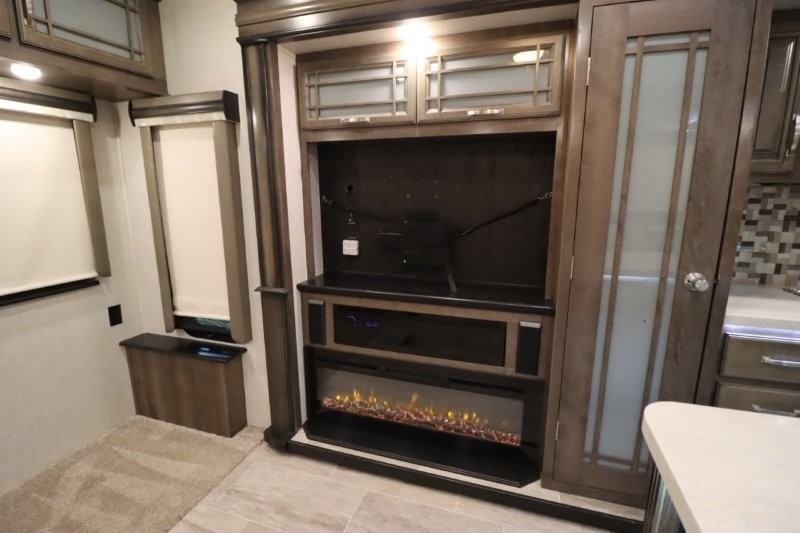 You are sure to love all of the amenities including the 20th anniversary edition enhancements throughout this fifth wheel! Starting with the master suite featuring a walk-through bedroom to the front bathroom with a unique soaking bath tub, dual sinks, and a shower with a seat. You will also find a handy half bath for your guests across from the main entry. The combined rear living and kitchen area allows you to make meals, visit with family, and relax while watching the HDTV all while being comfortable on the furniture with the warmth of the fireplace. The cook will enjoy using the kitchen island, storing cold food and drinks in the 18 cu. ft. residential refrigerator, heating up leftovers in the convection microwave, and making a cup of Joe at the coffee station. You might even decide to add a washer and dryer option to the kitchen closet that is prepped and ready for the full-timer life or weekend warrior that enjoys clean linens and clothes.