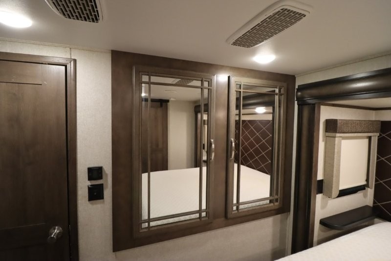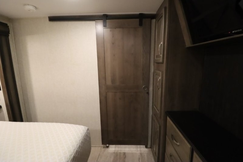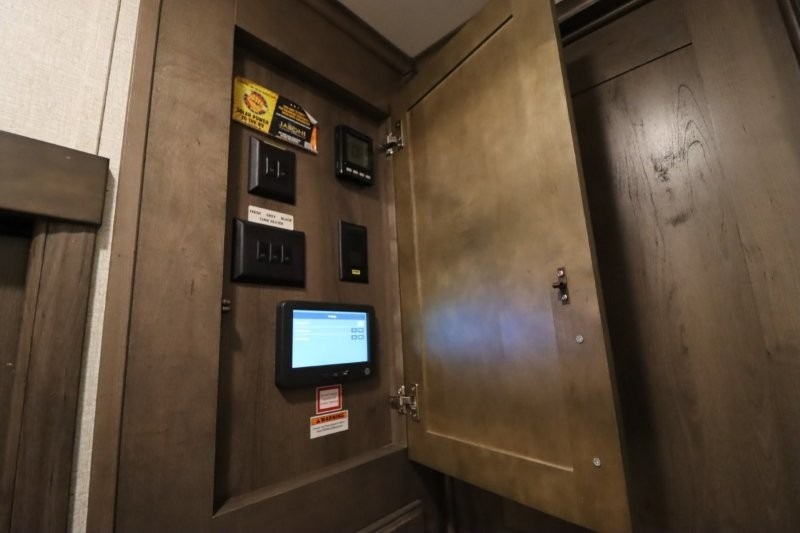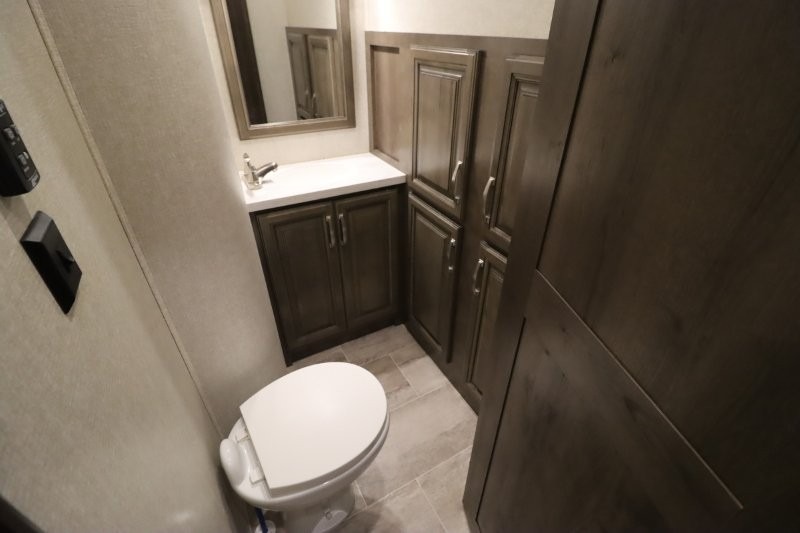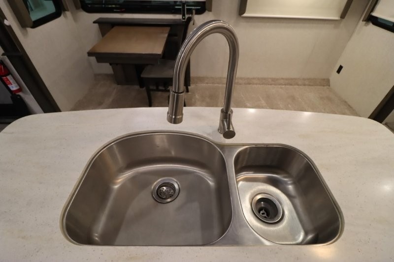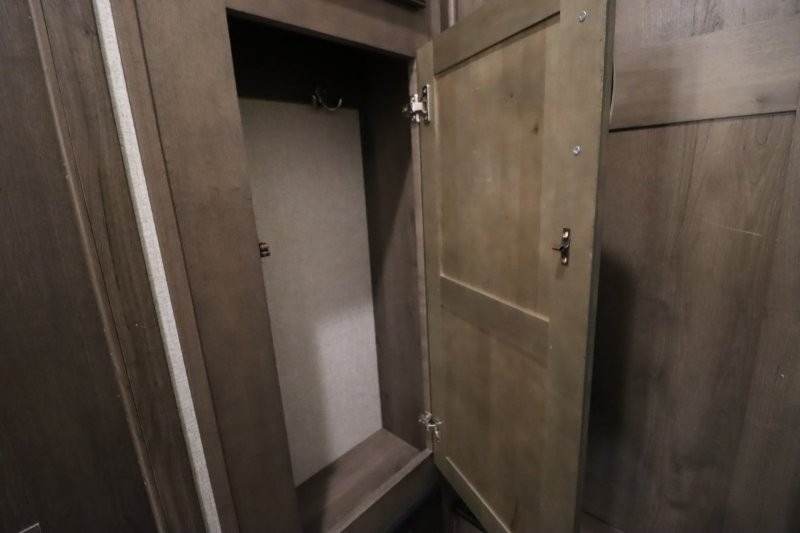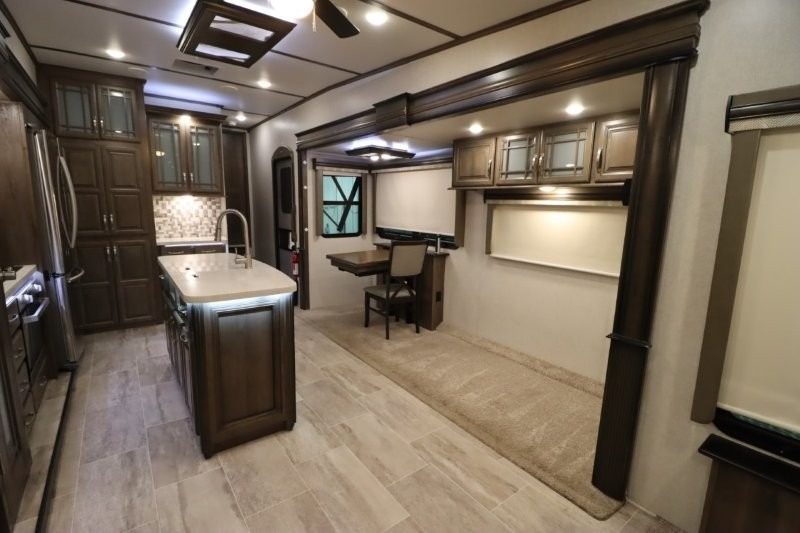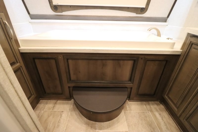 You are sure to love all of the amenities including the 20th anniversary edition enhancements throughout this fifth wheel! Starting with the master suite featuring a walk-through bedroom to the front bathroom with a unique soaking bath tub, dual sinks, and a shower with a seat. You will also find a handy half bath for your guests across from the main entry. The combined rear living and kitchen area allows you to make meals, visit with family, and relax while watching the HDTV all while being comfortable on the furniture with the warmth of the fireplace. The cook will enjoy using the kitchen island, storing cold food and drinks in the 18 cu. ft. residential refrigerator, heating up leftovers in the convection microwave, and making a cup of Joe at the coffee station. You might even decide to add a washer and dryer option to the kitchen closet that is prepped and ready for the full-timer life or weekend warrior that enjoys clean linens and clothes.