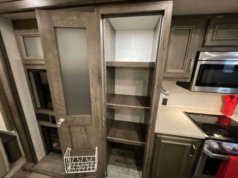 When heading out and setting up in a Keystone Montana High Country fifth wheel you will appreciate the Dexter E-Z Lube axles, Max Turn front cap and radius frame with Hitch Vision, and an enormous drop frame pass-through storage compartment to name a few features. Inside you will find luxury and comfort with the 78" tall main slide outs and flush mounted LED interior lights. The bath features a skylight over the shower, seamless countertops, and a vanity with three drawers for extra storage space!. The chef of the family is going to love the Montana High Country's kitchen with its Furrion 21" two in one stainless steel cooktop and oven, a 30" over-the-range microwave, solid surface countertops, and a high-rise faucet with an integrated pull-out sprayer, plus so much more!