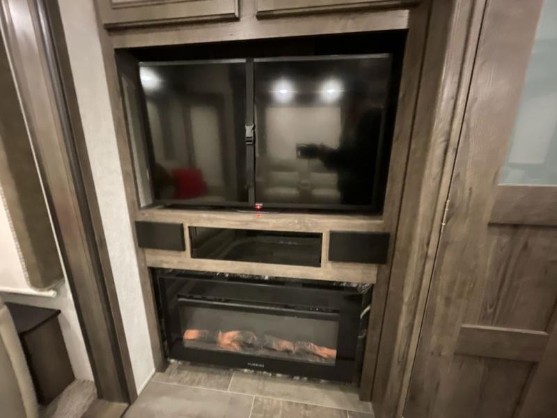 When you are ready to relax or entertain in luxury, step into this Montana High Country. Just imagine the floor space you will have with triple slide outs; two slides in the main living and kitchen area, and one slide in the front bedroom. Now imagine using the kitchen island for prepping and serving meals to your camping friends as well as washing the dishes. You will also love the usefulness of the hutch for displaying decor and storing extra dishes. Everyone can watch the big game on the HD LED TV above the LED fireplace. The front bedroom provides your own oasis with a shiplap design headboard, an HD LED TV, and a space that has been prepped for an optional washer and dryer. Outside you will find a 2" receiver hitch on the rear, exterior storage compartments, and an electric awning. Just think, you get to choose indoor or outdoor relaxation everyday!