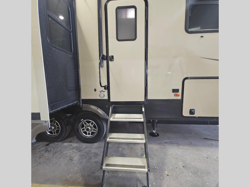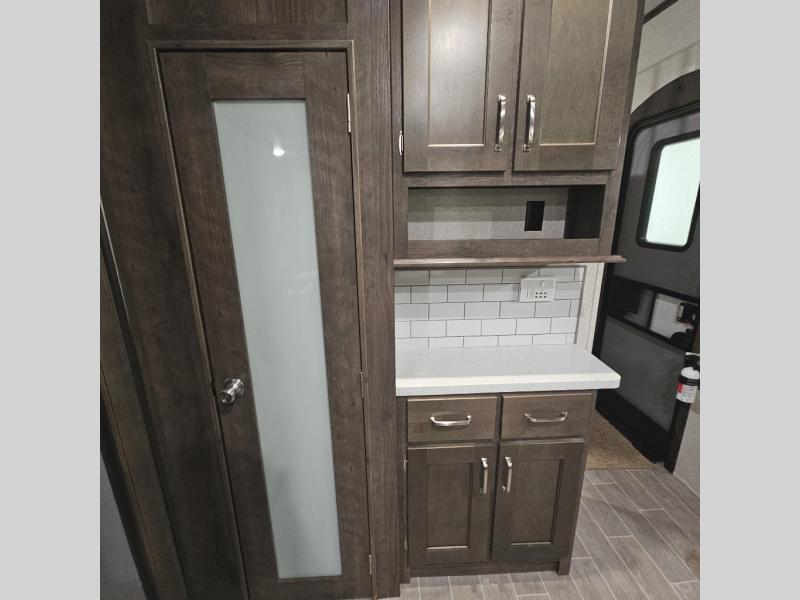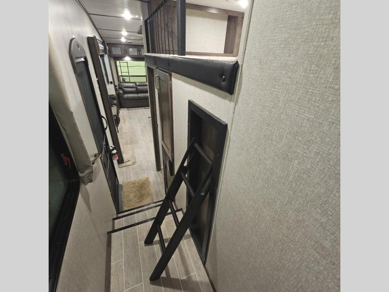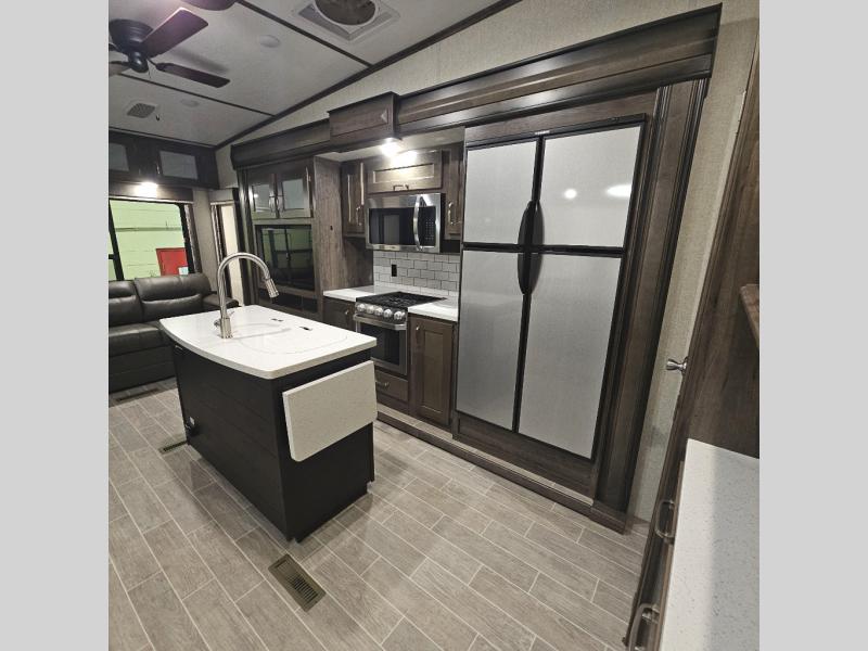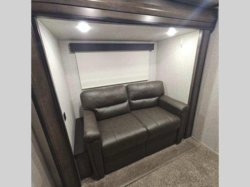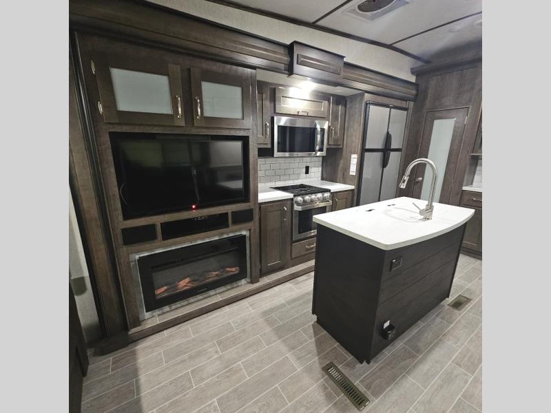 Looking for at-home conveniences, comforts, and lots of space for your large family or an extra room as an office? Starting with the kitchen area, you will find the cook at the center island with a counter extension for extra prep space, making a cup of Joe at the coffee station, or looking for the ingredients from the large pantry or 12 cu. ft. RV refrigerator. Everyone can gather in the living area with plenty of seating choices while watching the HD LED TV and staying warm by the LED fireplace. You will love the look of the shiplap design headboard for the queen bed when you escape to watch the HD LED TV when the kids are watching the other TV. The extra bedroom/office offers a hide-a-bed sofa, and a desk for homework or office work. You will find a loft above this room for more sleeping or storage space. Outside you can enjoy cooking on the outdoor kitchen, relaxing under the awning, and appreciate having a 2" receiver hitch for your bike rack or such. Step inside, you will not regret it!