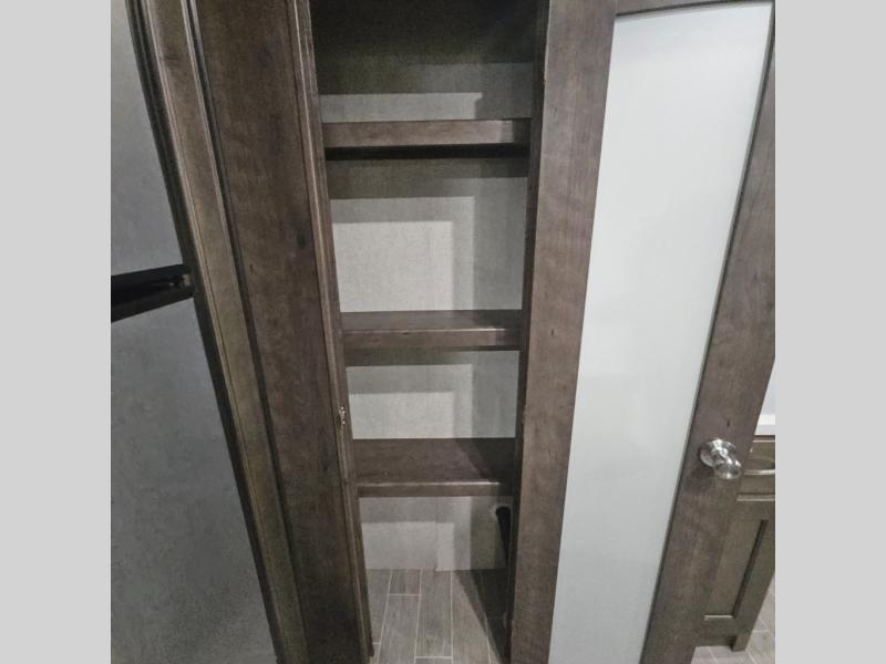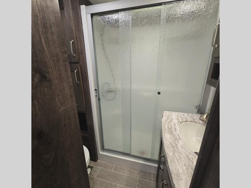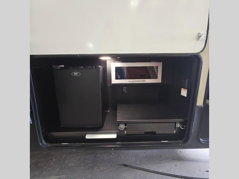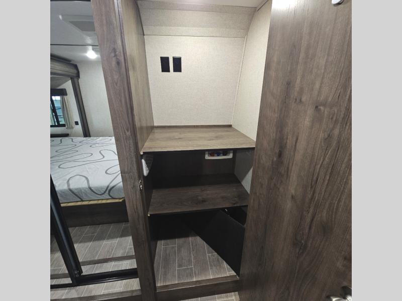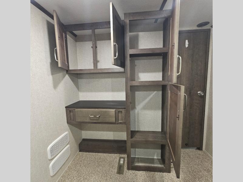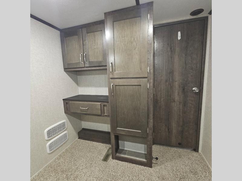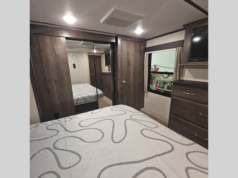 Looking for at-home conveniences, comforts, and lots of space for your large family or an extra room as an office? Starting with the kitchen area, you will find the cook at the center island with a counter extension for extra prep space, making a cup of Joe at the coffee station, or looking for the ingredients from the large pantry or 12 cu. ft. RV refrigerator. Everyone can gather in the living area with plenty of seating choices while watching the HD LED TV and staying warm by the LED fireplace. You will love the look of the shiplap design headboard for the queen bed when you escape to watch the HD LED TV when the kids are watching the other TV. The extra bedroom/office offers a hide-a-bed sofa, and a desk for homework or office work. You will find a loft above this room for more sleeping or storage space. Outside you can enjoy cooking on the outdoor kitchen, relaxing under the awning, and appreciate having a 2" receiver hitch for your bike rack or such. Step inside, you will not regret it!