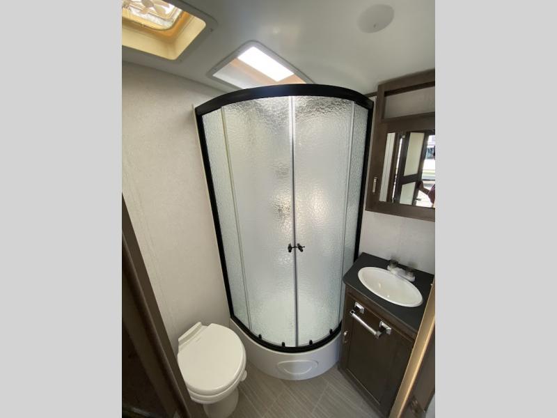 The Passport Grand Touring models are lightweight and towable behind many SUVs and half-ton trucks. Each model comes with Load Equalization axles that reduce sway for an easy tow, and the unit has an enclosed, sealed and heated underbelly for four seasons of traveling. Once at your destination you can walk up the entry steps and grab onto the fold away exterior grab handle by the main door for support. You will find several residential style features such as durable Armstrong linoleum, furniture with high grade fabric, and raised panel hardwood cabinet doors. The exterior shower is very useful to get cleaned up before entering the RV, washing your pets, or even cleaning a few dishes outside. Choose your favorite Passport Grand Touring model today, and start making memories tomorrow!