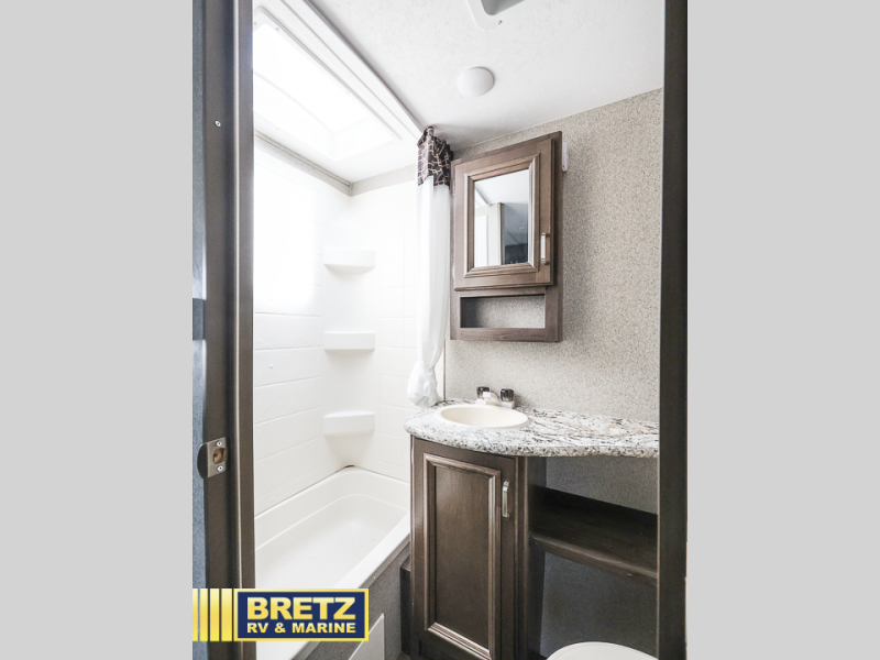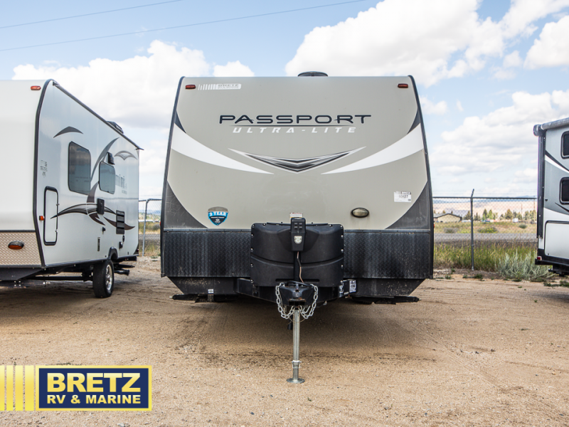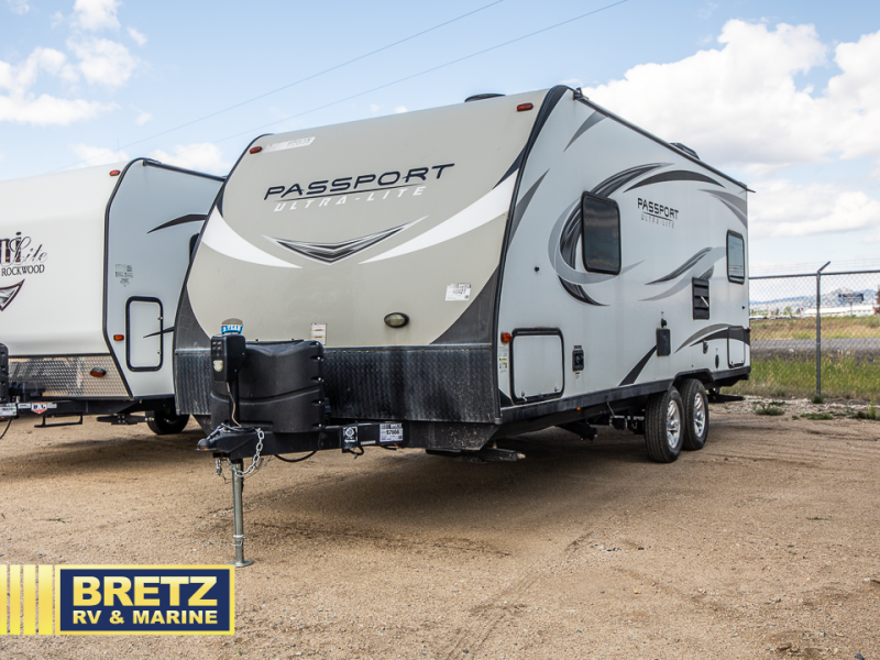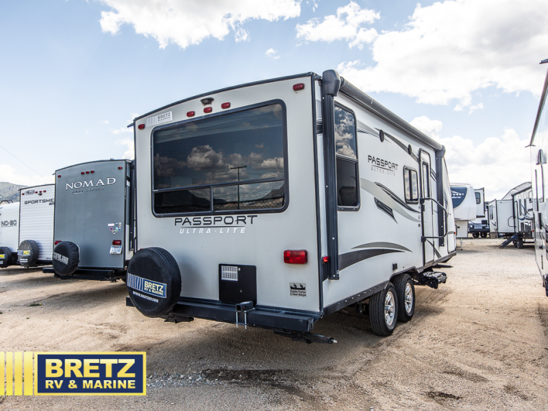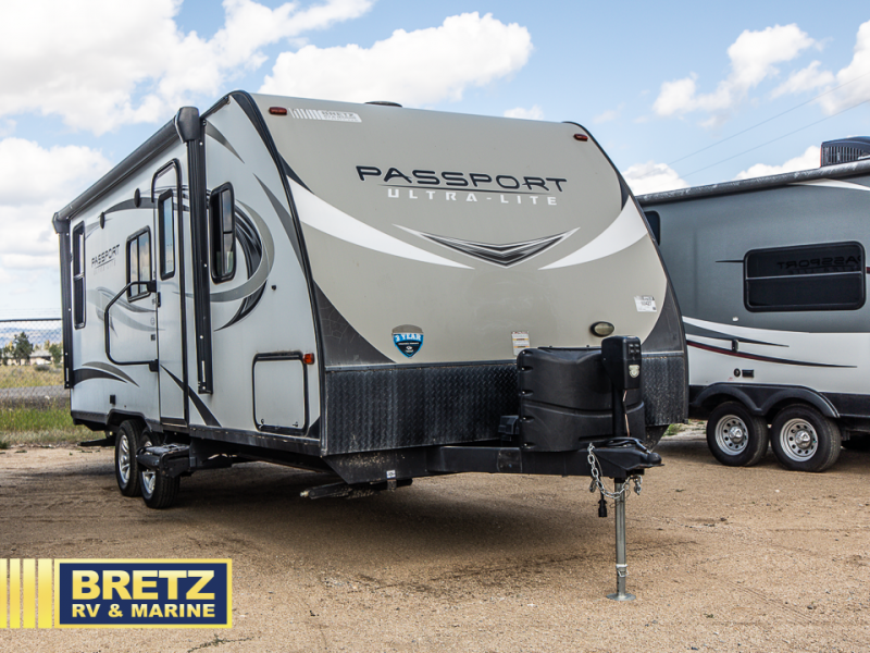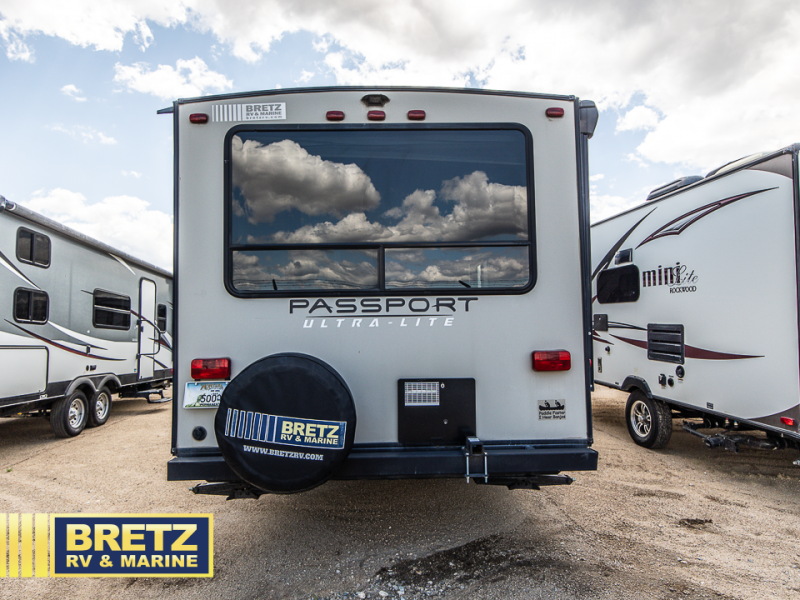 Can you envision relaxing by the campfire on a beautiful evening or on the U-shaped dinette on a rainy day? This Passport travel trailer provides comfortable seating and sleeping arrangements for three to four campers, plus full bath amenities. You will enjoy a queen bed with a privacy curtain for extra space to get changed or to separate the rooms. The bathroom allows you to stay clean while away from home, and the kitchen appliances provide everything necessary to make your favorite meals. You will find an exterior pass-through compartment giving you extra space for the larger camping items, and the interior includes plenty of storage for your clothing, games, and such. Take this Passport with you today!