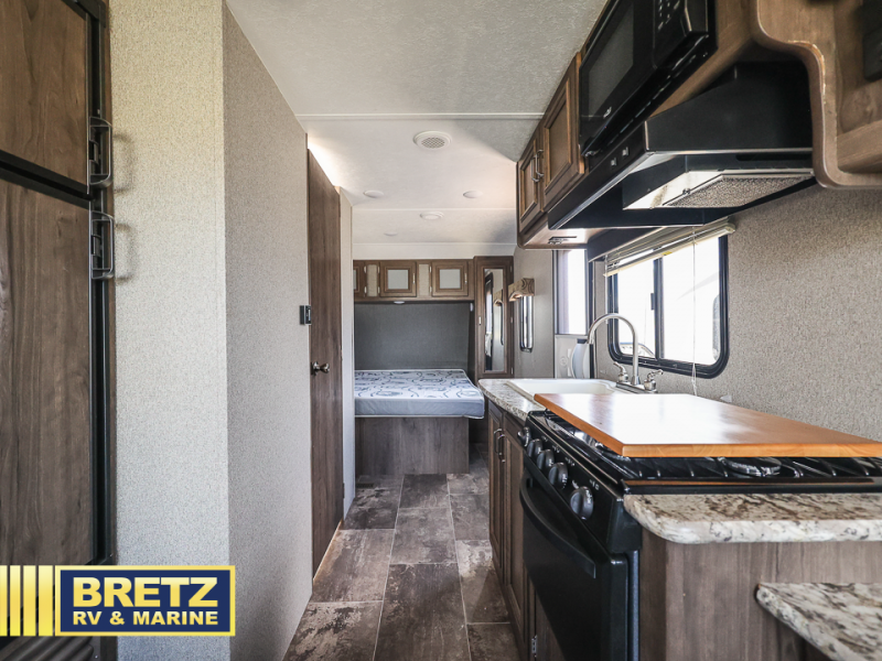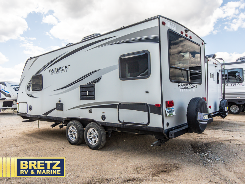 The Passport models come in a compact design with travel-friendly lengths that are lightweight and easy to tow behind many smaller crossover SUVs. You will find several residential style features such as durable Armstrong linoleum, furniture with high grade fabric, and raised panel hardwood cabinet doors. The exterior shower is very useful to get cleaned up before entering the RV, washing your pets, or even cleaning a few dishes outside. Choose your favorite Passport today, and start making memories tomorrow!