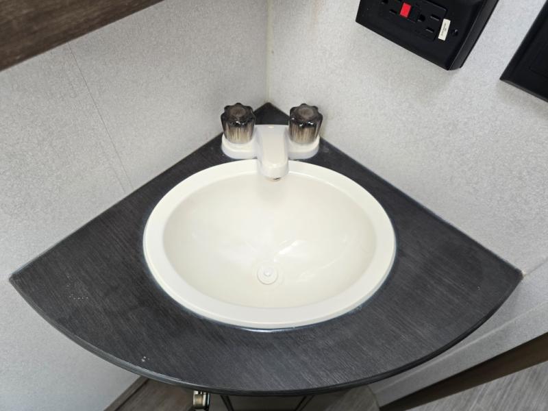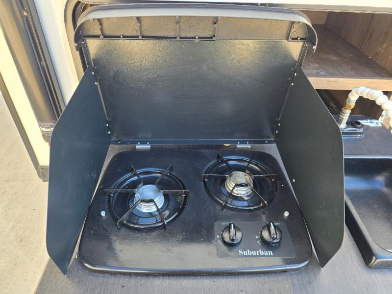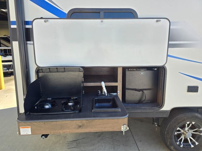 The Passport Express models come in a compact design with travel-friendly lengths that are lightweight and easy to tow behind many smaller crossover SUVs. You will find several residential style features such as durable Armstrong linoleum, furniture with high grade fabric, and raised panel hardwood cabinet doors. The exterior shower is very useful to get cleaned up before entering the RV, washing your pets, or even cleaning a few dishes outside. Choose your favorite Passport Express today, and start making memories tomorrow!
