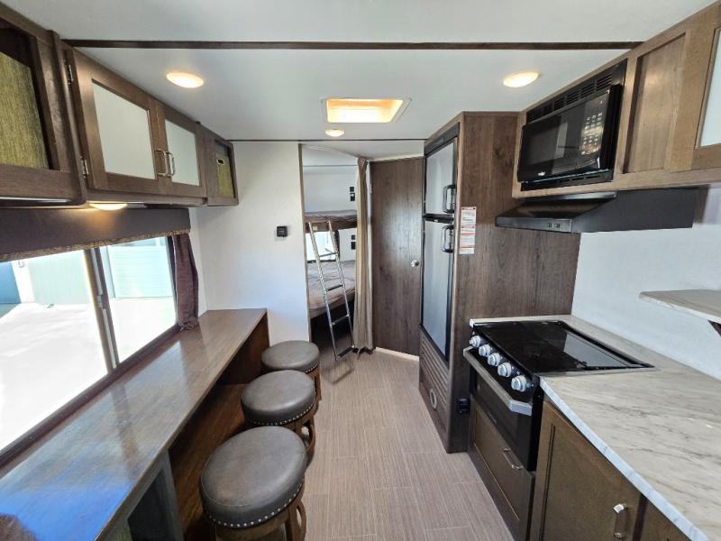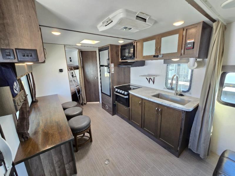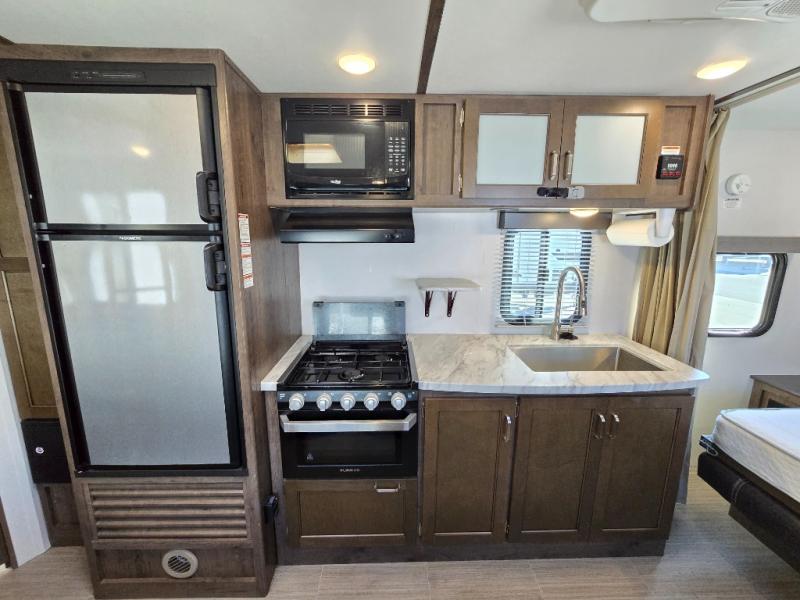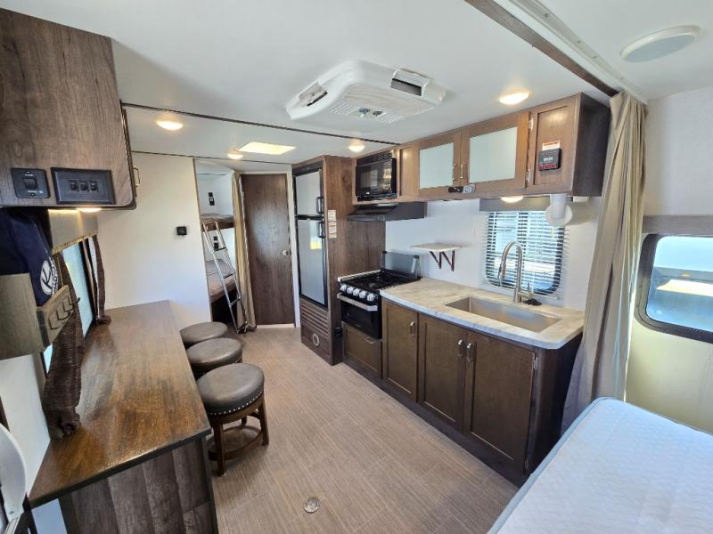 Have you been envisioning your family sitting around the campfire after riding bikes all day? Or daydreaming about visiting all the state parks with the comforts of home hitched up to your tow vehicle? This Passport just makes sense when you need sleeping space for six to seven, appreciate having your own full bathroom, and love cooking outdoors. From the Murphy bed and sofa combination allowing for a bedroom up front or a living area to the rear set of double size bunk beds, you will be able to enjoy this model for years. Don't forget about the outside kitchen, and the exterior pass-through compartment. Family fun and loads of memories will happen when you travel with this Passport!