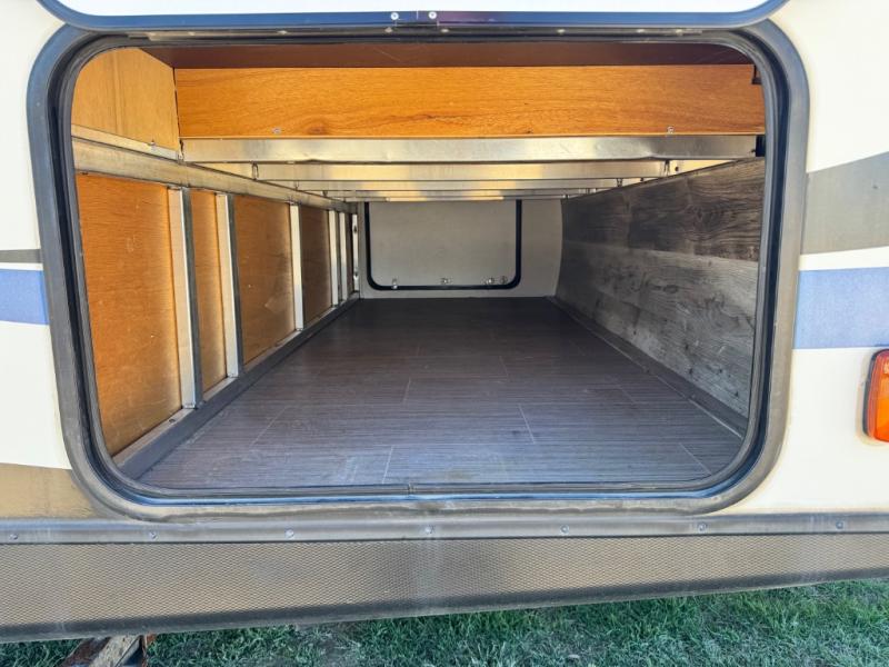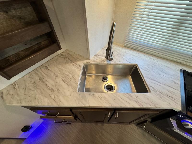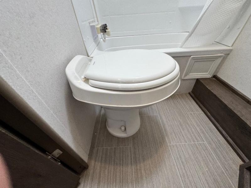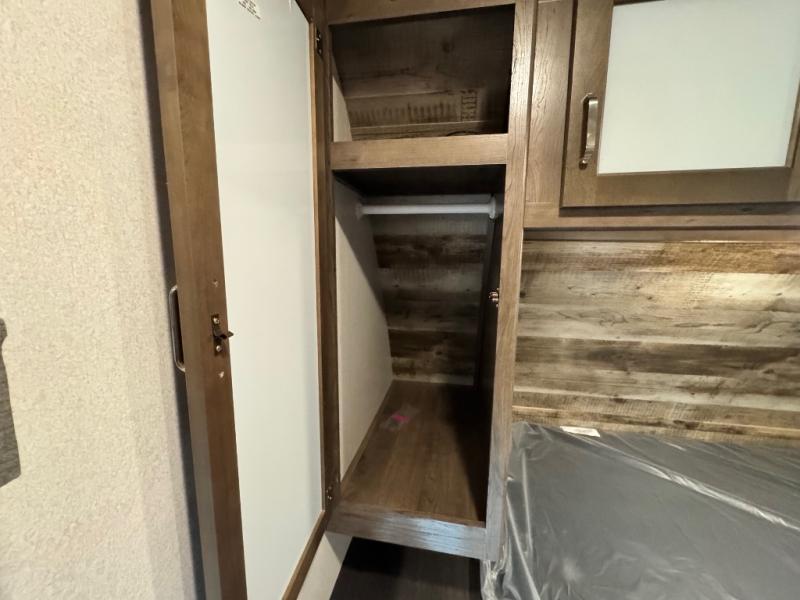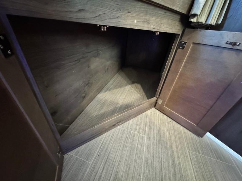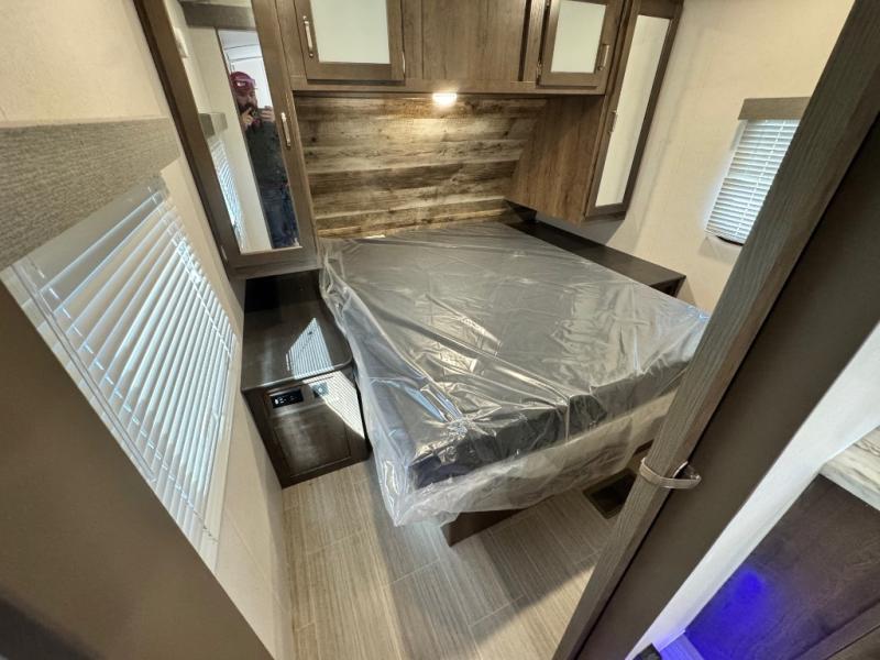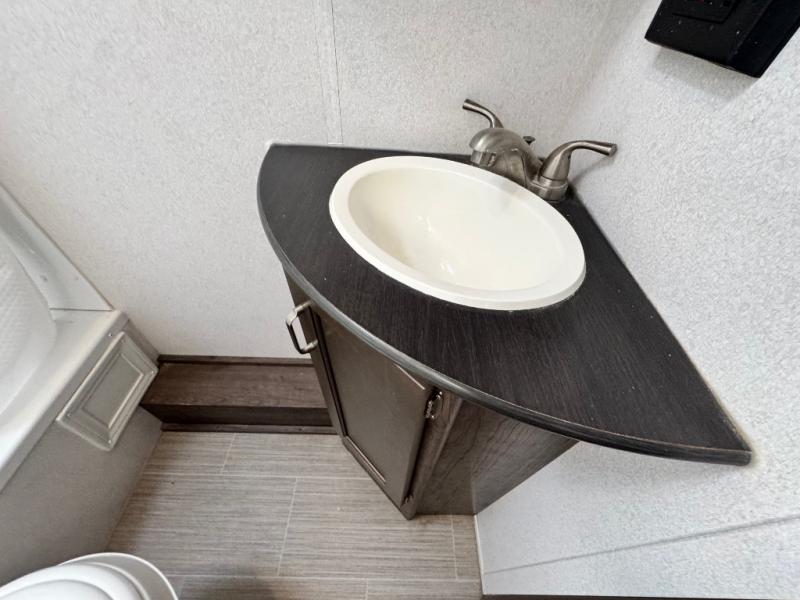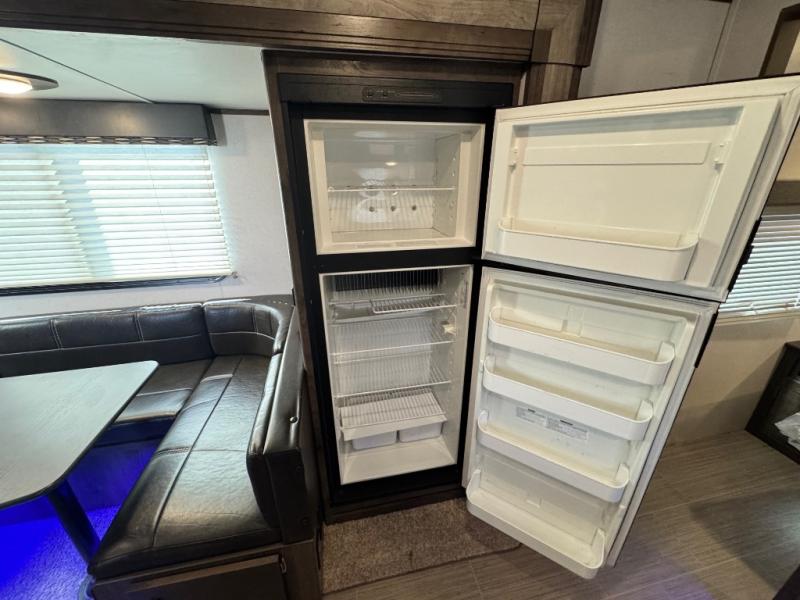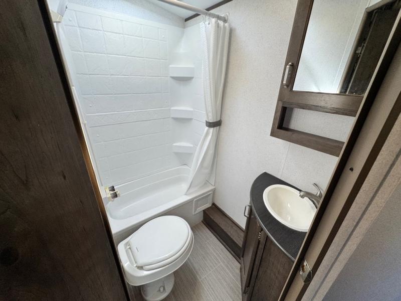 After hiking and biking around the campgrounds you can return to your own travel trailer to make dinner on the outdoor kitchen, or the indoor kitchen with full amenities. The main living area will allow everyone to eat around the U-shaped dinette while watching the flat screen TV if you aren't outdoors enjoying the cool weather. The kids can draw straws to decide which of the two double size bunks will be theirs for the weekend. Your spouse can choose their favorite side of the queen bed while you unload the extra large gear in the pass-through storage. Come see even more features you will love!