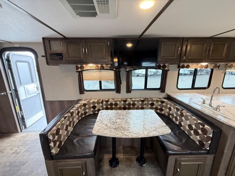 This Passport 2900RK Grand Touring travel trailer will have you daydreaming about all the campgrounds you will visit all year long. From the private front bedroom with quick access to the dual entry bathroom, to the seating in the living area for eight, you will be able to host all the gatherings. The cook will enjoy the U-shaped kitchen counter inside, and the outside kitchen when the guests move outdoors to see the stars. This model is perfect for a couple that enjoys plenty of room to entertain and relax, or a family of five to six. Take a look today!