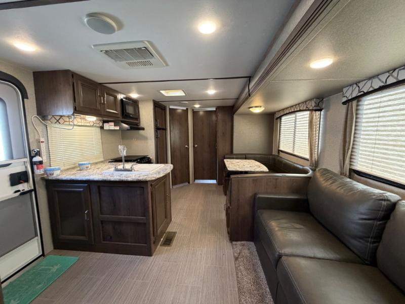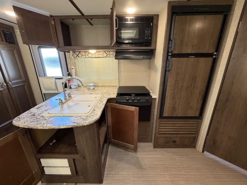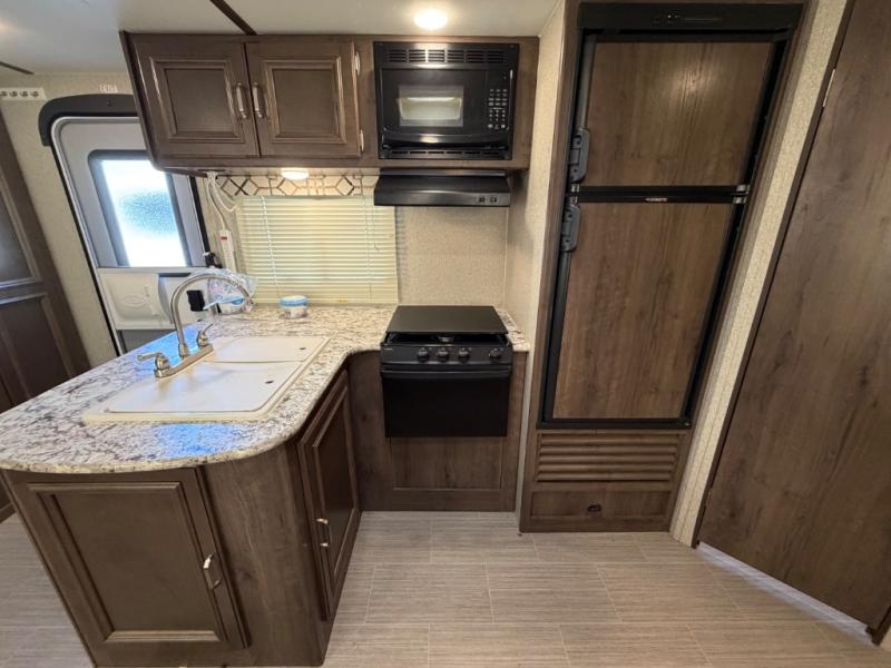The Passport Grand Touring models are lightweight and towable behind many SUVs and half-ton trucks. Each model comes with Load Equalization axles that reduce sway for an easy tow, and the unit has an enclosed, sealed and heated underbelly for four seasons of traveling. Once at your destination you can walk up the triple entry steps and grab onto the XL folding entry assist handle for support. You will find several residential style features such as durable Armstrong linoleum, furniture with high grade fabric, and raised panel hardwood cabinet doors. The exterior shower is very useful to get cleaned up before entering the RV, washing your pets, or even cleaning a few dishes outside. Choose your favorite Passport Grand Touring model today, and start making memories tomorrow!