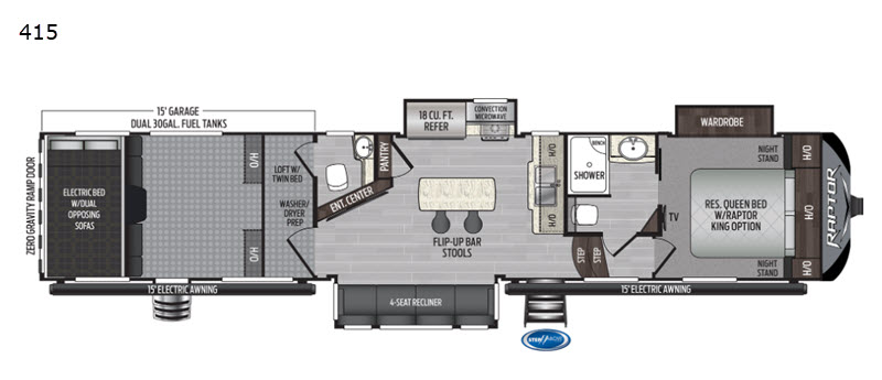 Keystone Raptor toy hauler 415 highlights: