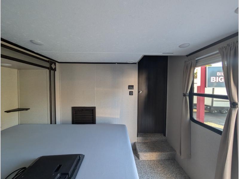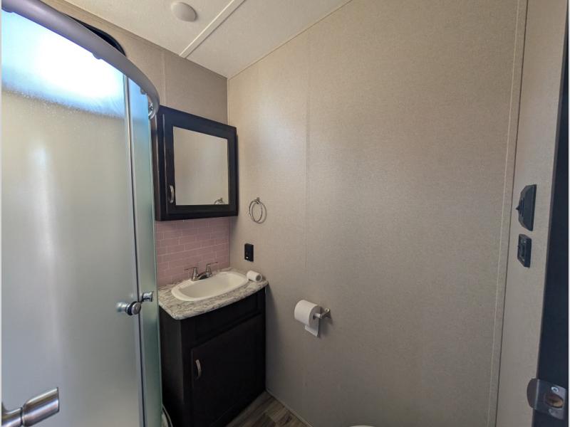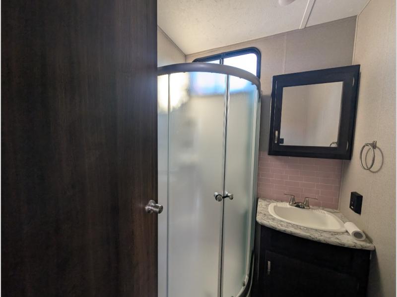 If you have been dreaming about a second home on a lake for you and your family, this Residence destination trailer is the perfect choice! This model offers everything you will need in a getaway oasis, like the king-size bed in the private bedroom that has its own exterior entrance door so that you can slip in and out without waking other campers. The kids will certainly love spending their nights sleeping in the loft, and your guests will sleep comfortably on the sofa sleeper in the front living area. You will find the 60" dual pane sliding glass doors provide additional natural light and a beautiful view of outside.