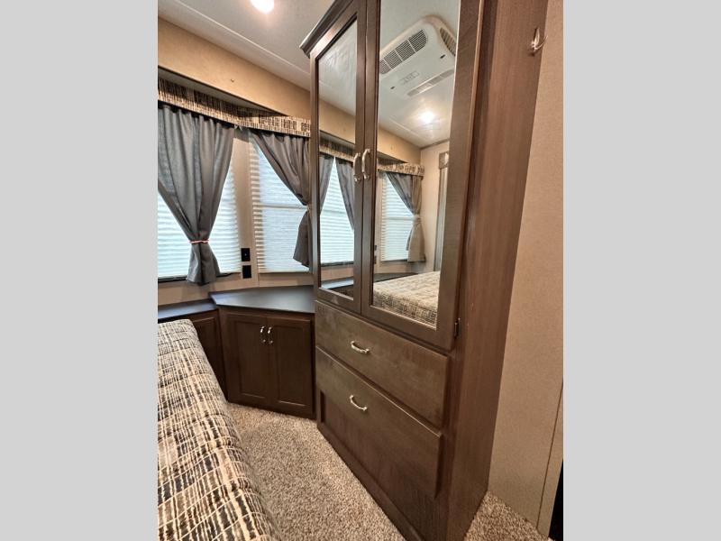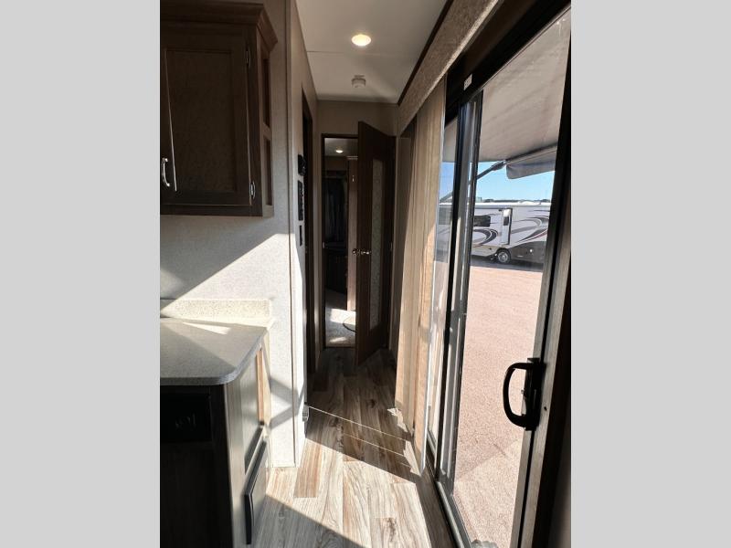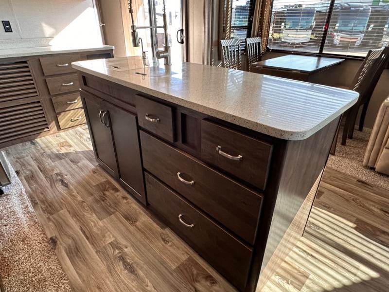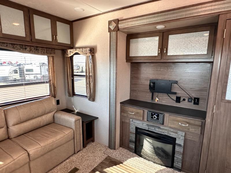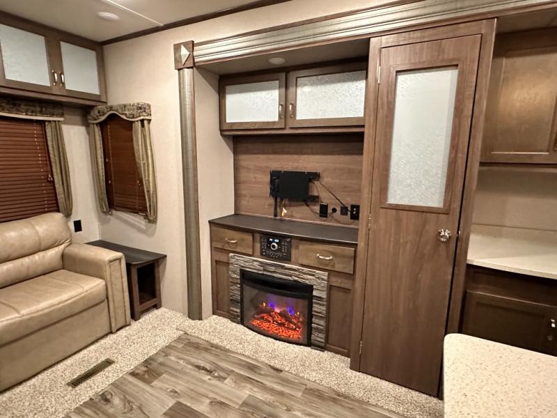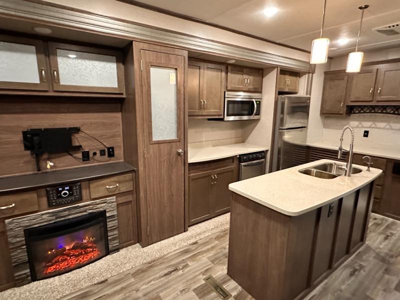 This Keystone Retreat Destination model 39RLTS features a rear living layout for entertaining your guests that may join you on your trip. You will love having a private front bedroom fit for a king. You have an exterior entrance into the bedroom for convenience after a long day, and then there are patio doors that enter the living/kitchen area. You can also relax in front of the fireplace on a rainy day and there is a 40" HD TV for some entertainment as well.