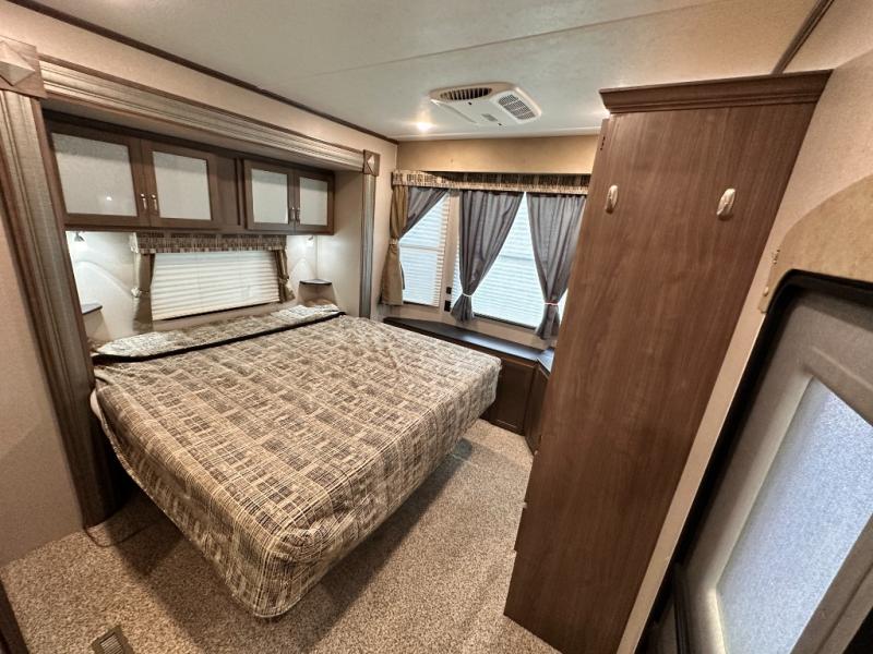 Keystone Retreat destination trailers should be your next choice when it comes to an extended stay unit. You have plenty of interior features to make it a home away from home. There are large bay windows that will add light to your unit and 8 ft. ceilings giving the space an open feel. The main living floors are Daro wrapped to keep the moisture out! The exterior is built to last with the reinforced superframe and slide out room openings. There is a black tank flush and a detachable hitch for some added convenience throughout your vacation. Come take a look at the Retreat destination trailers today!