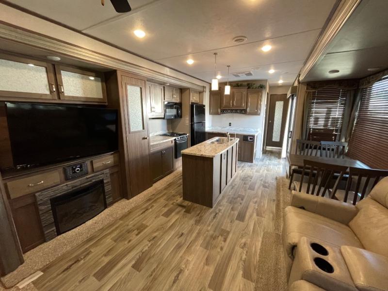 This Keystone Retreat Destination model 39RLTS features a rear living layout for entertaining your guests that may join you on your trip. You will love having a private front bedroom fit for a king. You have an exterior entrance into the bedroom for convenience after a long day, and then there are patio doors that enter the living/kitchen area. You can also relax in front of the fireplace on a rainy day and there is a 50" HD TV for some entertainment as well.