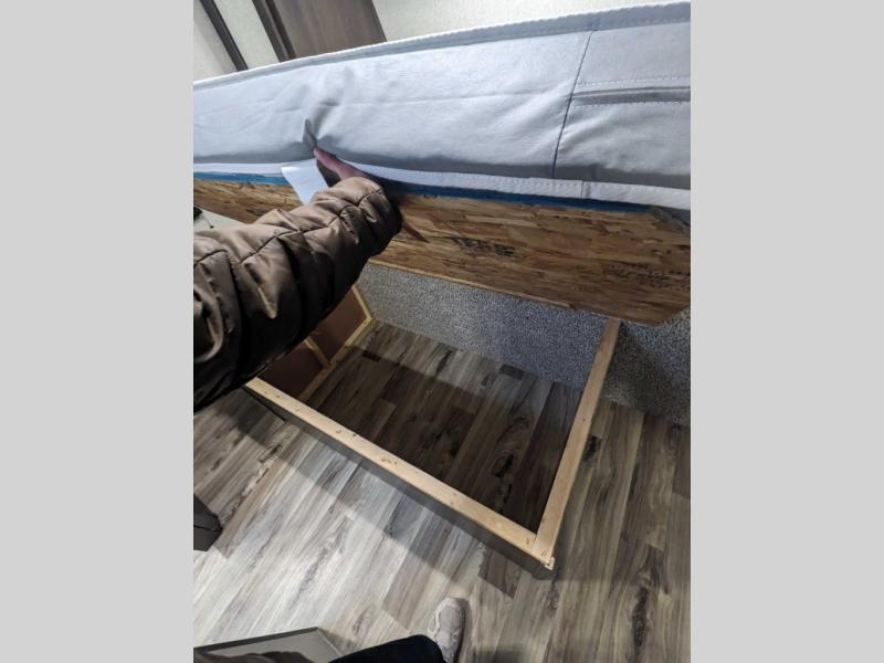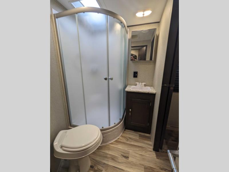 In any Keystone Springdale travel trailer, you will find premium features to make your camping experience feel like a home away from home. Some of these features are a high rise kitchen faucet, a 7 cu. ft. refrigerator, storage under the master bedroom, and an AM/FM Bluetooth CD/DVD entertainment system. These fifth wheels and travel trailers will provide you and your family with all the travel conveniences you want and expect without costing you a fortune. Each model includes a powder coated l-beam frame, cambered chassis, Lion's head nitro filled tires, and hurricane straps to reinforce the structure are just a few of the exterior/construction standards that create a unit built to last.