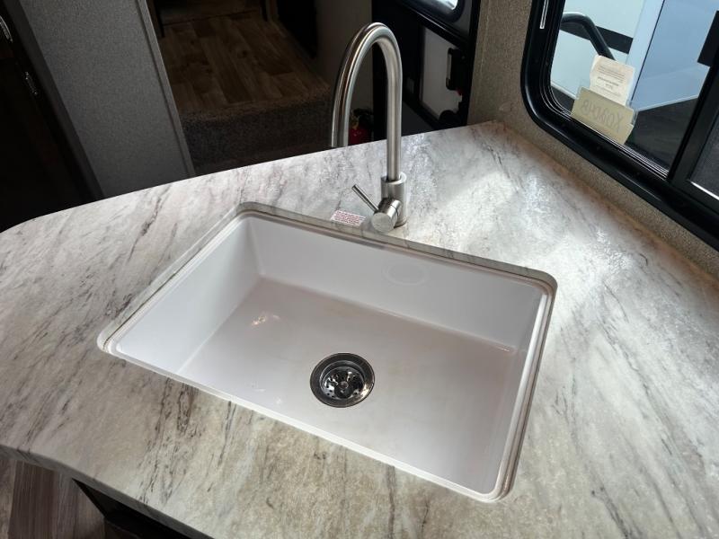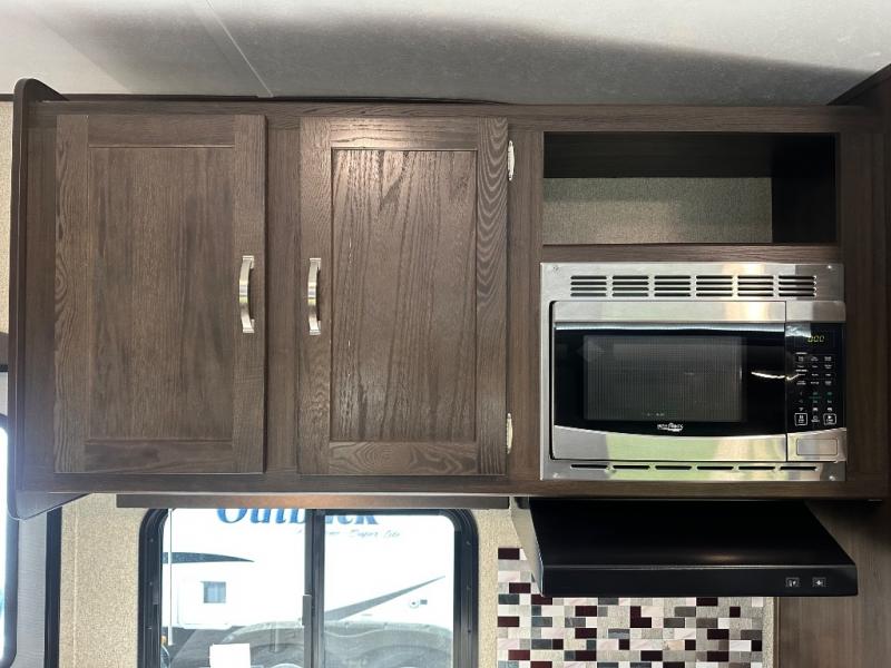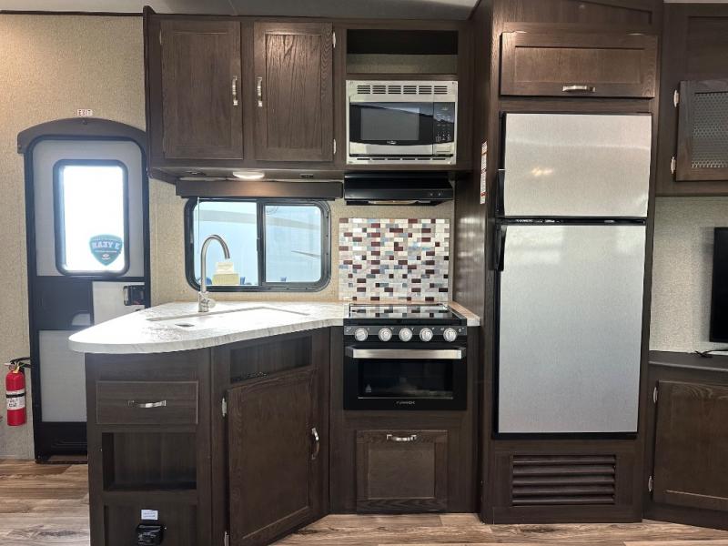 In any Keystone Springdale fifth wheel, you will find premium features to make your camping experience feel like a home away from home. Some of these features are a high rise kitchen faucet, a 7 cu. ft. refrigerator, storage under the master bedroom, and an AM/FM Bluetooth CD/DVD entertainment system. These fifth wheels will provide you and your family with all of the travel conveniences you want and expect without costing you a fortune. Each model includes a powder coated l-beam frame, a cambered chassis, Lion's head nitro filled tires, and hurricane straps to reinforce the structure. These are just a few of the exterior/construction standards that create a unit built to last through your adventurous excursions! So, come today and pick a Keystone Springdale fifth wheel that best suits you!
