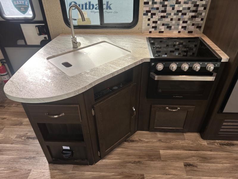 It's time for you to do camping the right way with this Keystone Springdale 272FWRE fifth wheel! It features a front private bedroom that has a queen bed for you to rest up after your adventurous day. Plus, there are closets and nightstands on either side of the bed and a wardrobe for you to keep your clothes tidy. You even have your own entrance into the dual entry bath. Inside the bathroom, there is a radial shower with a skylight above to help add more natural lighting as you get ready for the day. While you're whipping up your best meal in the kitchen with the three burner cooktop with an 18" oven or even the residential microwave, you can still socialize with your family and friends as they relax at either the booth dinette or the tri-fold sofa. Both of these furnishings can transform into extra sleeping spaces when you need them.