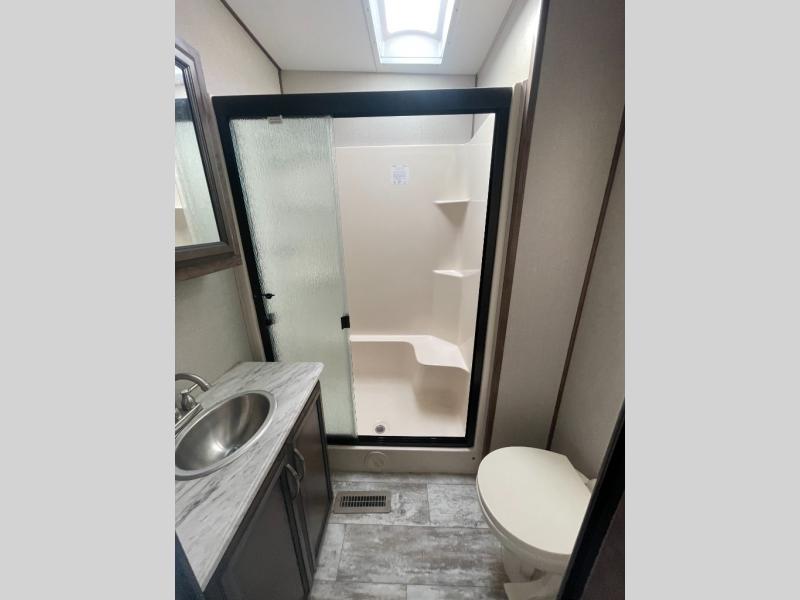 Don't pass up on the opportunity to camp in real luxury with this KZ Durango fifth wheel! The front living area is sure to be a crowd pleaser with the two hide-a-bed sofas, and the theater seating that can recline and even has lights in the cupholders, plus there is a 40" fireplace for you to stay warm and cozy. No more drinking cold coffee, just pop it in the convection microwave and it will be just as hot as when it was freshly brewed. If you've had an adventurous day and want to unwind, then head into the bathroom and enjoy a hot shower with a seat and skylight above it. After you are clean and fresh, hop into the king-size bed and enjoy a good night's rest!