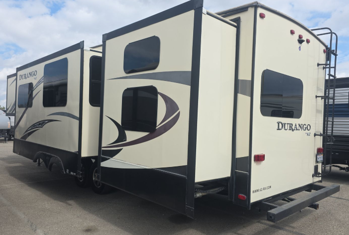Your search is over! This Durango fifth wheel by KZ has everything on your checklist. This model features a bunkhouse with a half bath including a full wall entertainment center. The half bath has two entries, one from the bunkhouse and one from outside. There is comfortable residential-style furniture throughout including a U-shaped dinette in the living/kitchen area. You will also find a LED TV to watch, and a multiple media stereo. Don't forget about the outside kitchen including a rear bumper grill, sink, and even a refrigerator. So if you need sleeping space for 10 campers, enjoy floor space from five slide outs, and love to cook outdoors, check this model out today!