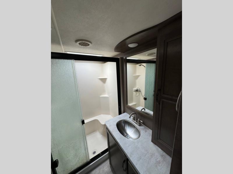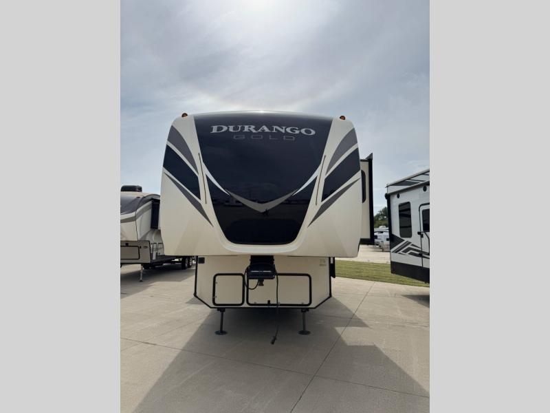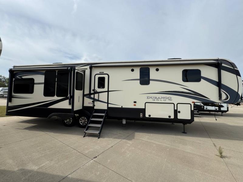 With the KZ Durango Gold fifth wheel, luxury is our name, and all-season living is our game! The Durango Gold has been built with all-weather insulation, double-insulated holding tanks, and a fully heated/enclosed underbelly. These units are also constructed with a 101" wide body, a 6-sided 100% aluminum frame, a high-gloss ivory-colored Lamilux fiberglass, and a walk-on Superflex TPO roof membrane. You also have all the comforts of home with a residential stainless steel sink, solid surface countertops, maple-glazed cabinetry, and a power vent fan.