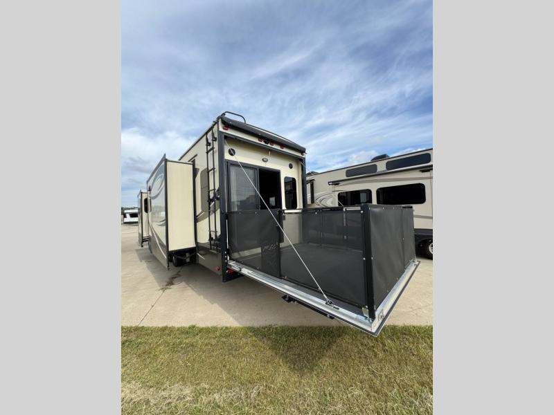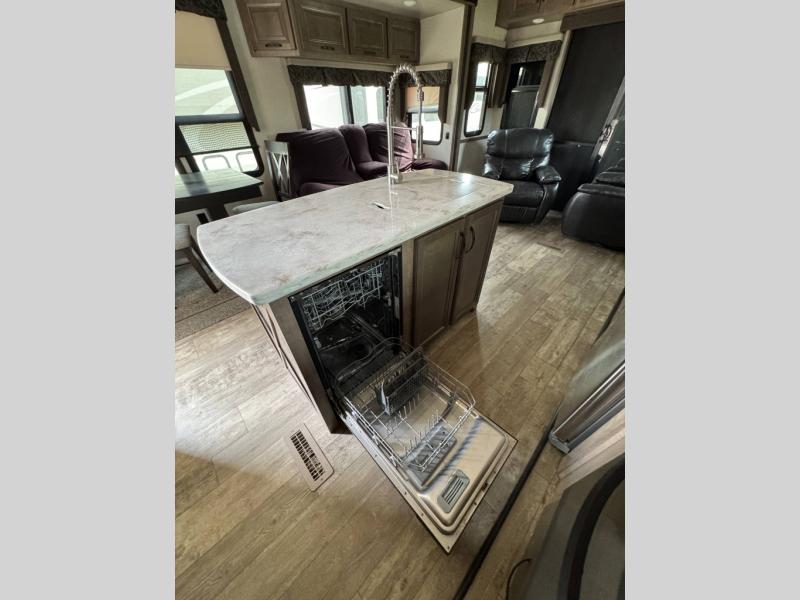 If you are looking for a fifth wheel that is decked out, then take a look at this KZ Durango Gold luxury fifth wheel. There are many overhead cabinets inside which provide great storage throughout this model, and there is a pantry big enough to hold all of your favorite snacks. You will also love the 20' power awning with LED lights. On the patio deck, just add a few chairs and enjoy the outside without all of the dirt at your feet. A queen-size loft is sure to be a pleaser for your kiddos, and you will also love the desk top in the second bedroom so that you can get some work done in peace and quiet. Your meal prep is made easy thanks to the kitchen island that provides you with extra counter and storage space, plus it has a dishwasher so that you spend less time cleaning and more time outdoors!.